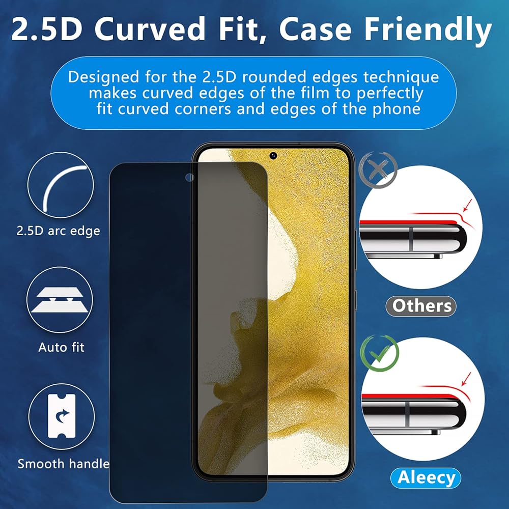 • 【 Anti Scratch/Privacy Screen】Made from superior 9H hardness tempered glass with special processing could protect screen from scratch of sharp objects, scratches, wear, 2.5D edge curved design makes fingers and hands feel comfortable and never scratching hands,tempered glass privacy screen protector keeps your personal and sensitive information safe from strangers.