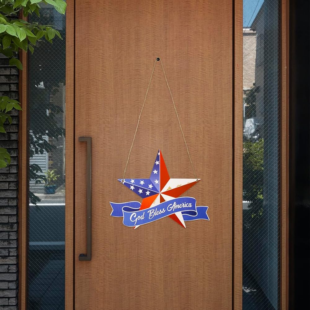 Dohia 4th of July Hanging Door Sign Independence Day Wreaths Patriotic Door Decorations Independence Day Welcome Sign Wreaths Stars Wall Decor