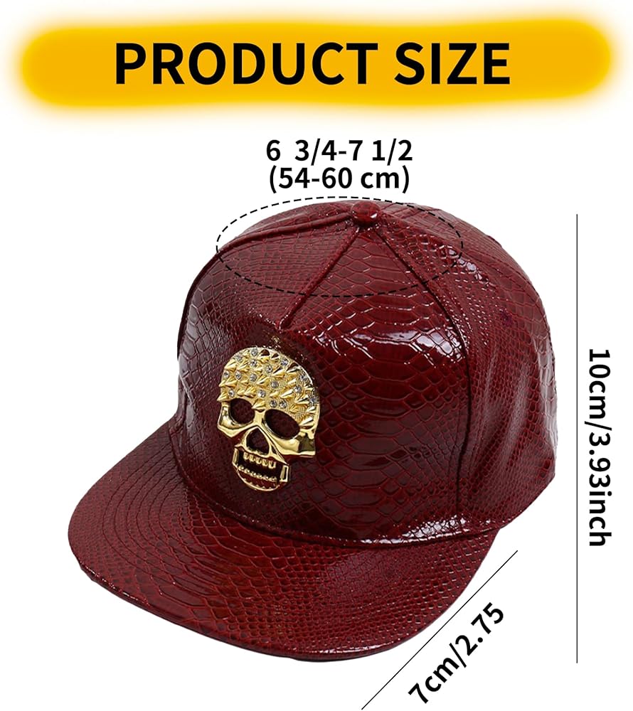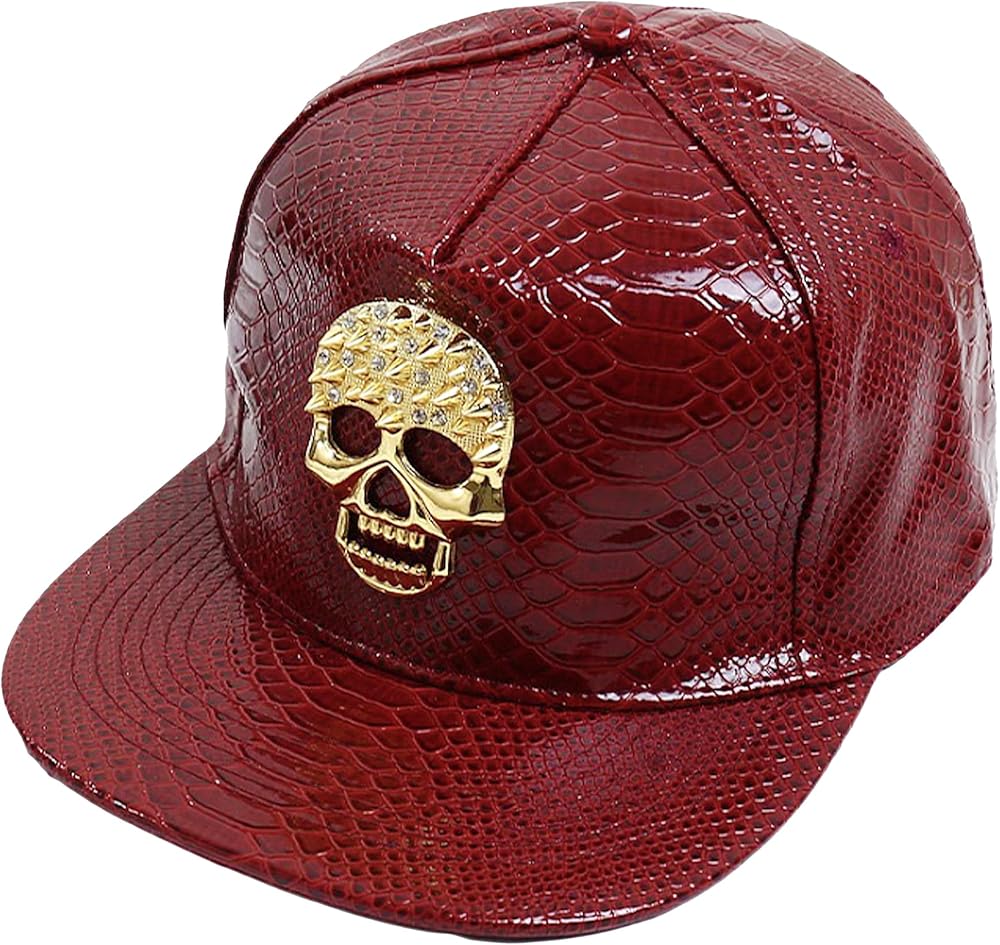 التصميم: الجزء الأمامي من القبعة يتميز بنمط دولار/جمجمة/عظمتين متقاطعتين مرصع بحجر الراين الشفاف، أكثر روعة ولمعانًا.