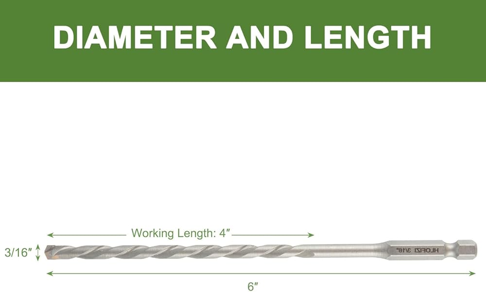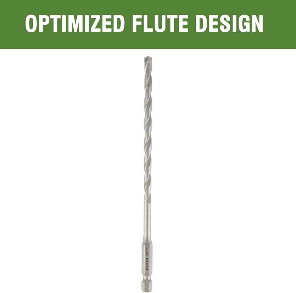 عمر أطول - لقمة ثقب البناء 3/16 بوصة مع أطراف كربيد التنجستن ذات الرأس الفاخر، لعمر أطول يصل إلى 5 مرات في الخرسانة والطوب والأسمنت والحجر والصخور وكتل الرماد ومواد البناء الأخرى