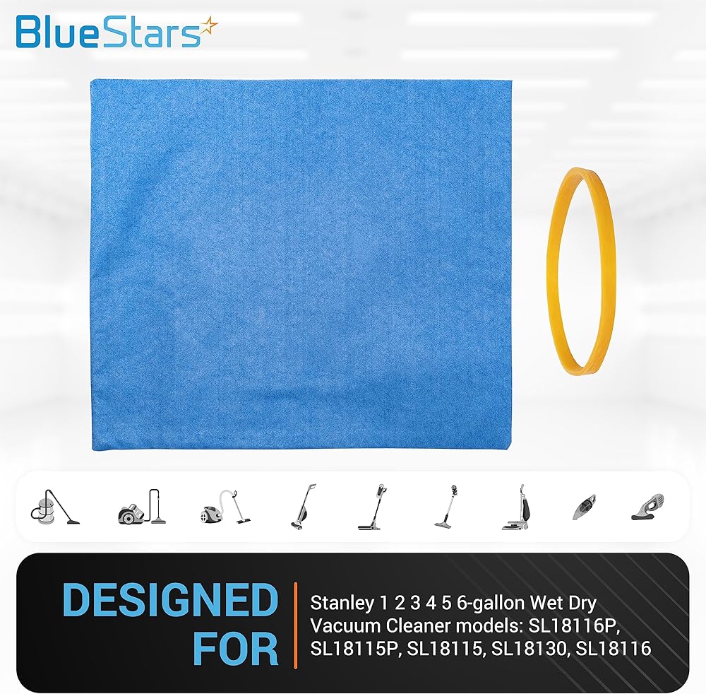 ✅ استبدال مثالي: حقيبة المكنسة الكهربائية BlueStars 25-1217 متوافقة مع مكنسة Stanley 1 2 3 4 5 6 جالون الكهربائية الرطبة والجافة الموديل: SL18116P، SL18115P، SL18115، SL18130، SL18116. أنها تحل محل رقم الجزء #25-1217.
