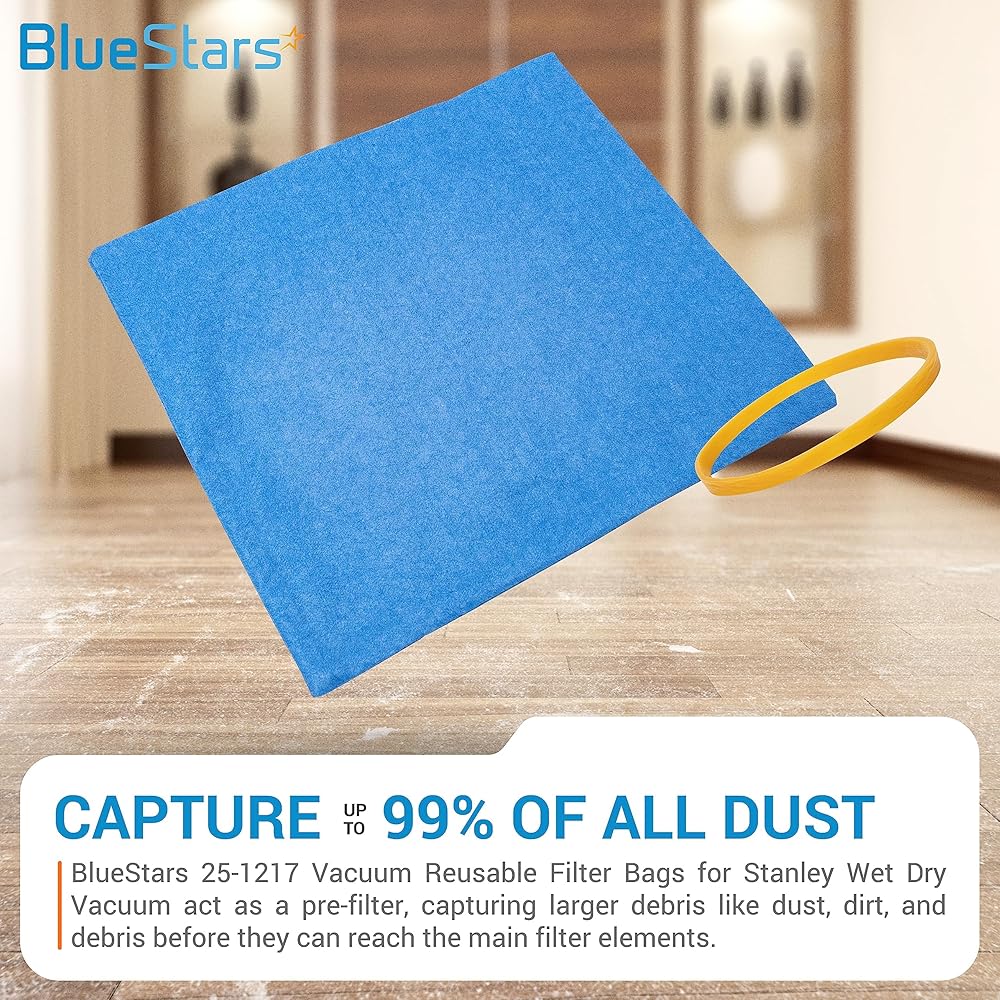 ✅ التقاط ما يصل إلى 99% من جميع الأتربة: تتميز أكياس فلتر BlueStars 25-1217 القابلة لإعادة الاستخدام للمكنسة الكهربائية Stanley Wet Dry بفلتر مسبق عالي الكفاءة مصنوع من مواد عالية الجودة ومتينة وقابلة للغسل: إسفنج ونسيج مطوي، يمكن أن يتحمل التكرار. يستخدم. يعمل الفلتر كمرشح مسبق، حيث يلتقط الحطام الأكبر مثل الغبار والأوساخ والحطام قبل أن يصل إلى عناصر الفلتر الرئيسية.