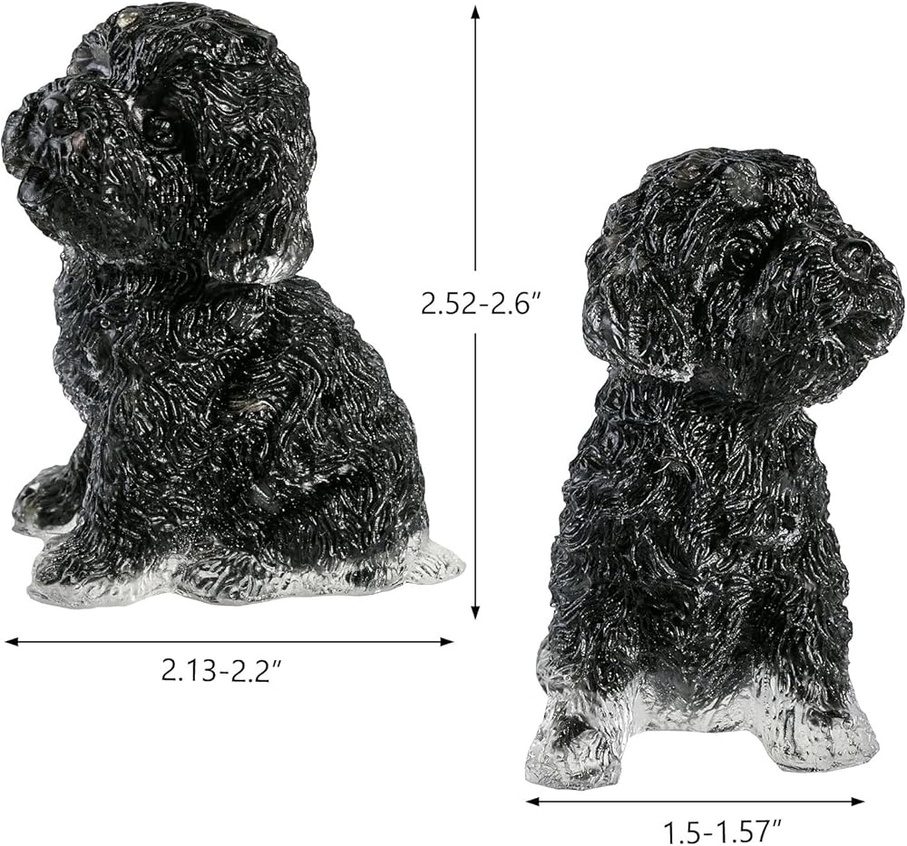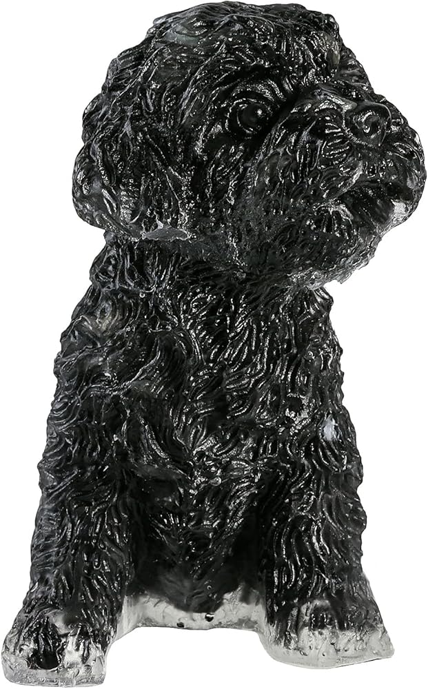 تمثال جرو كريستال من الراتنج: تمثال الكلب الكريستالي مصنوع من كريستالات حجرية متكسرة تم سكبها في قالب من الراتنج لإنشاء تمثال رائع لكلب بودل بأذنين متدلية ورأس مائل، مما ينضح بالجاذبية. يرجى ملاحظة أنه نظرًا للطبيعة الفريدة لكل حجر، قد تكون هناك اختلافات طفيفة في الحجم واللون والملمس.