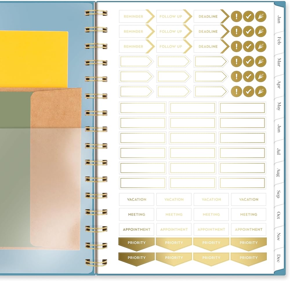 Find refined style and simplified planning with the Cambridge WorkStyle Classic Weekly Monthly Planner. Perfect for any professional, this planner gives you more ways to keep plans, appointments and deadlines organized all year long. Both simple and stylish, the Seaside Blue cover gives your plans a sophisticated look. Never miss a moment. This planner runs from January 2025 – December 2025 for year-round planning. Open weekly pages let you doodle, jot down ideas and plan in the way that works best for you. Pages measure 5-1/2" x 8-1/2". Keep your big picture plans in mind by quickly flipping to any month using the monthly tabs. To give your planning an extra edge, this planner comes with several special sections, including dot grid pages for ideas, habit tracking and more, notetaking pages, a double-sided pocket and a sticker sheet to help you label your plans. The durable poly cover helps the planner stand up to wear and tear. Gold twin wire binding helps keep your pages secure and won't snag on your bag or clothing.