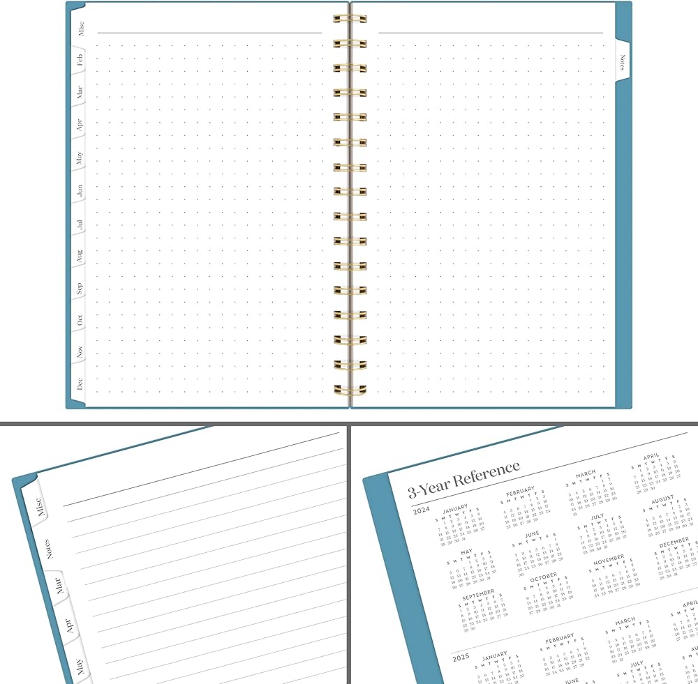 • BONUS PAGES – We've got a little something extra for you. Special sections include dot grid pages for ideas, habit tracking and more, notetaking pages, a double-sided pocket and a sticker sheet to help you label your plans.