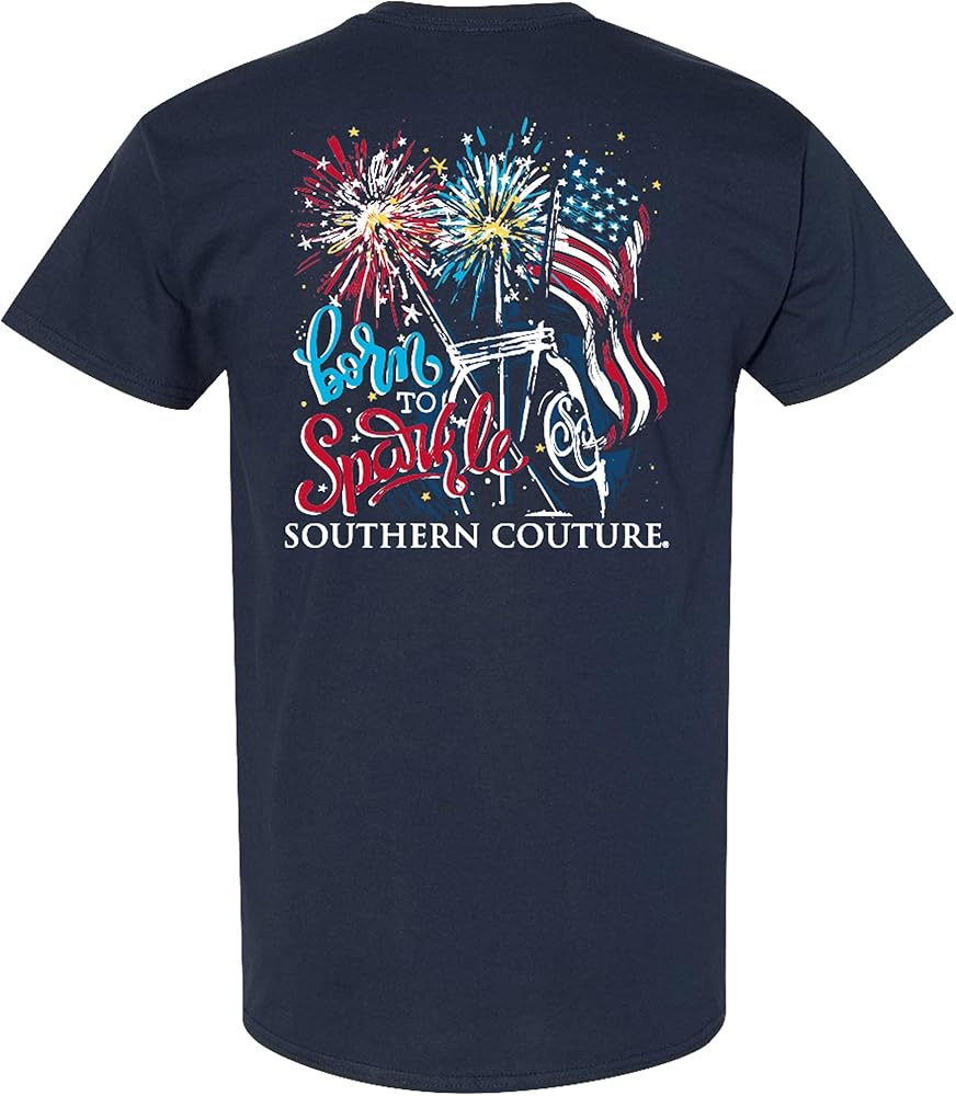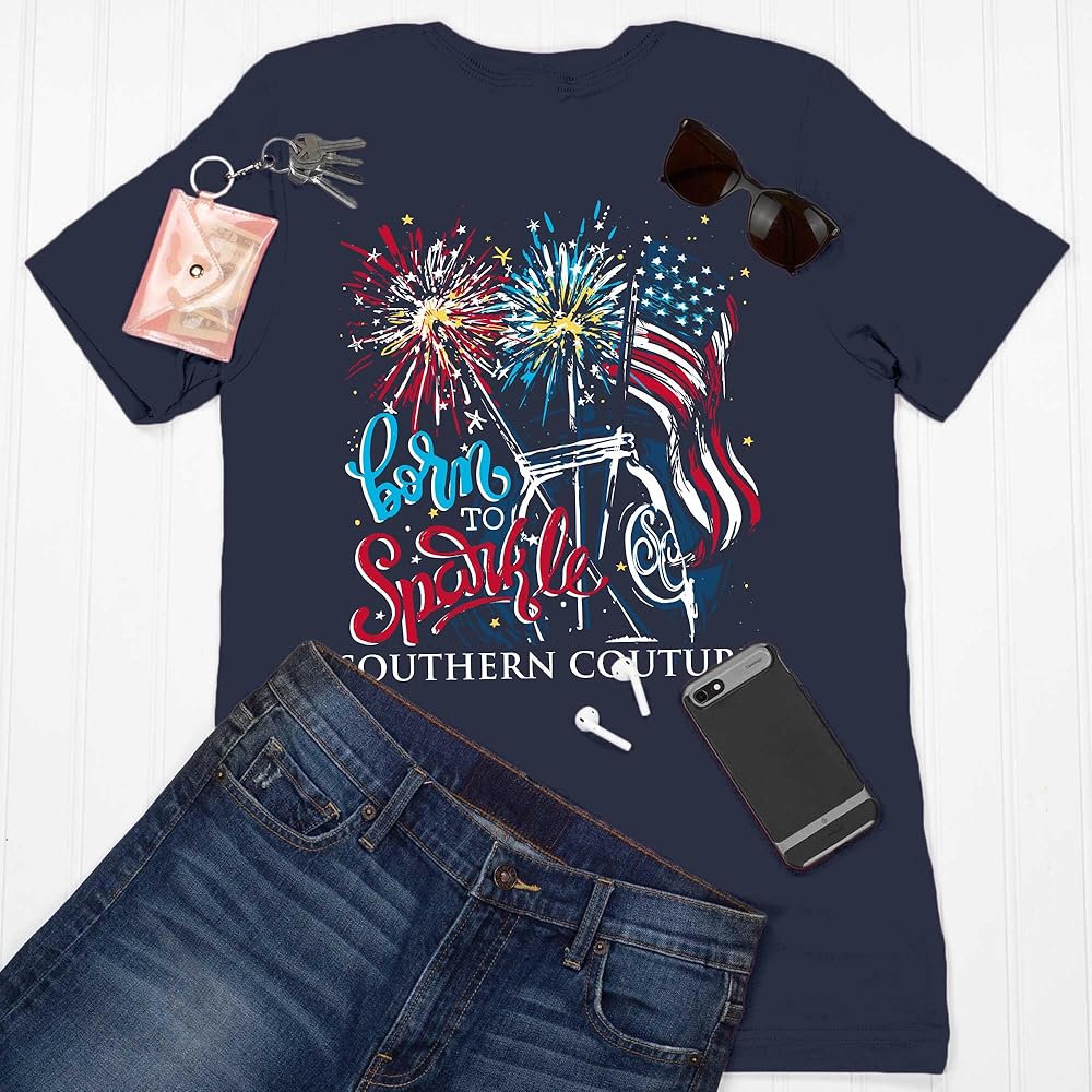 تي شيرت Southern Couture Born to Sparkle مصنوع من القطن باللون الأزرق الداكن للأزياء اليومية