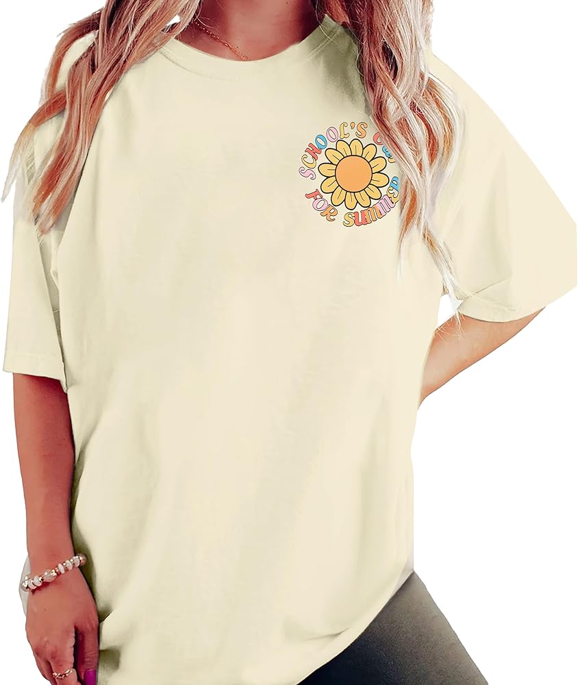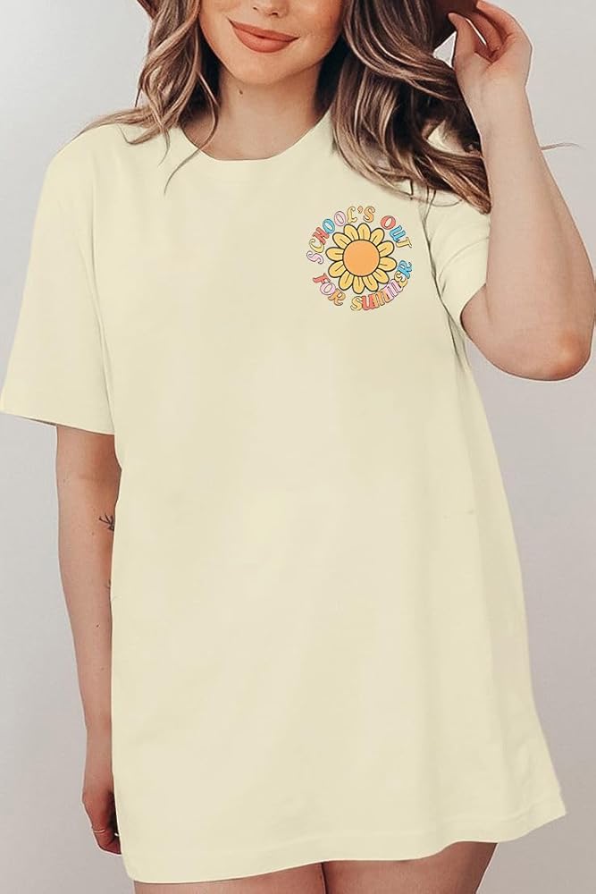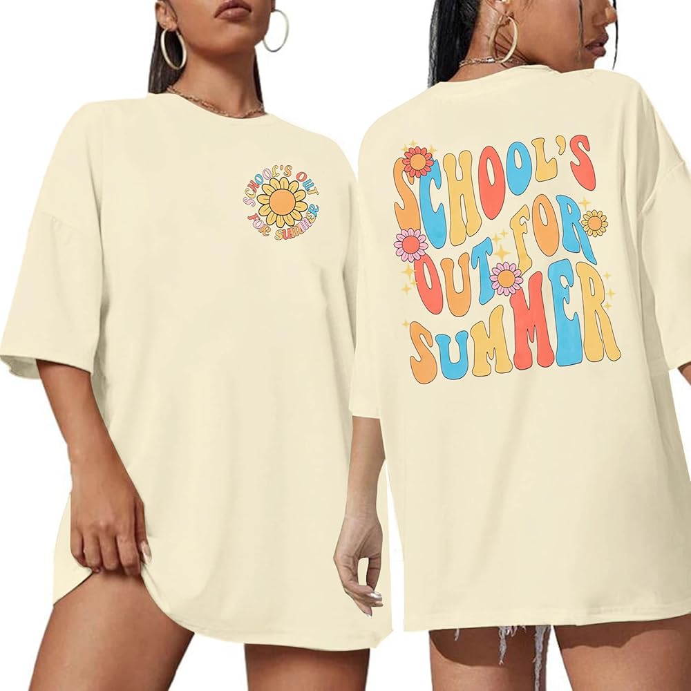 【تصميم مرح】مع حروف جريئة مكتوب عليها "School's Out for Summer" بألوان لافتة للنظر، من المؤكد أن هذا القميص سيجذب الانتباه ويصدر انطباعًا. تضيف الصورة الظلية كبيرة الحجم لمسة مريحة وسهلة، في حين أن الألوان النابضة بالحياة والتفاصيل الرائعة تجعلها قطعة مميزة في أي مجموعة.