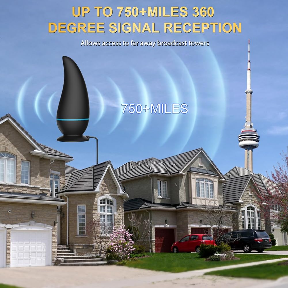 2024 Newest TV Antenna, 750+ Miles Long Range TV Antenna, for Smart TV, Indoor Outdoor Digital TV Antenna - Supports 8K 4K 1080P, Amplified HD TV Antenna for Free Channel-32FT Coax Cable