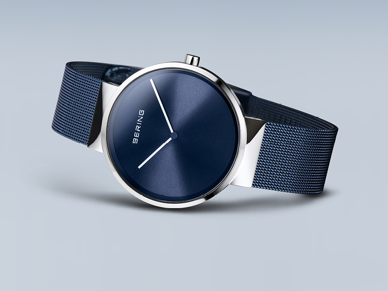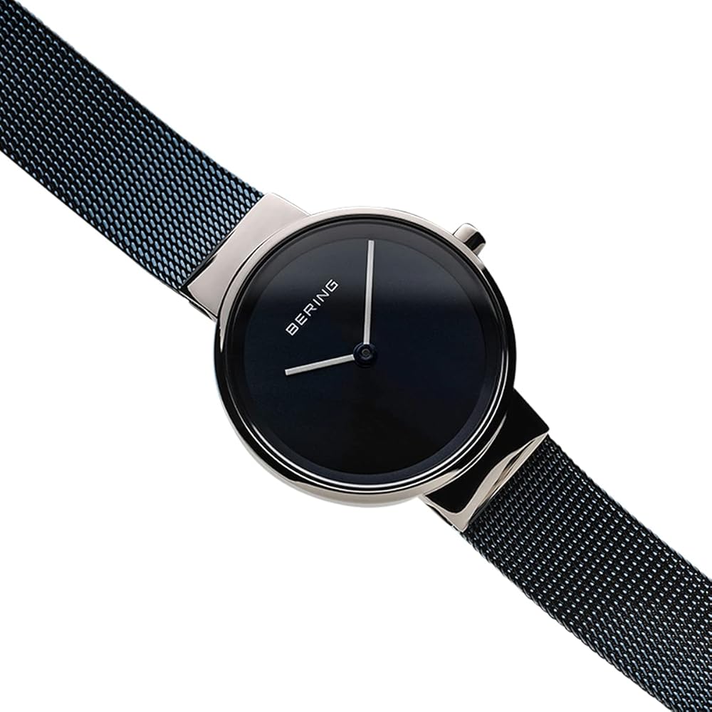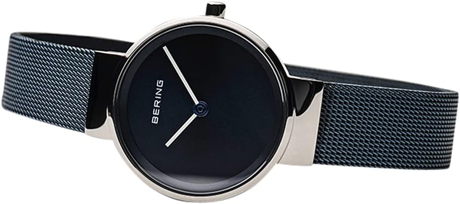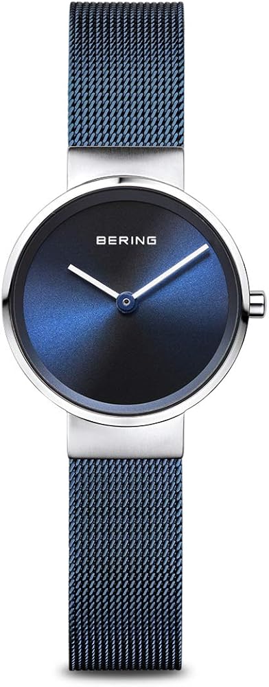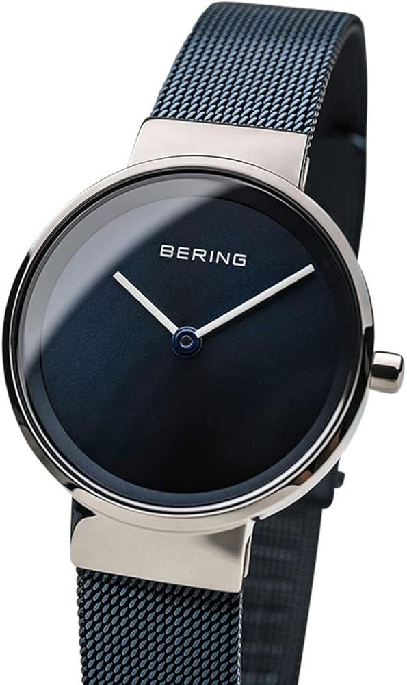 - تتميز ساعة BERING بكريستال ياقوتي مسطح مقاوم للخدش يغطي قرص أشعة الشمس الأزرق