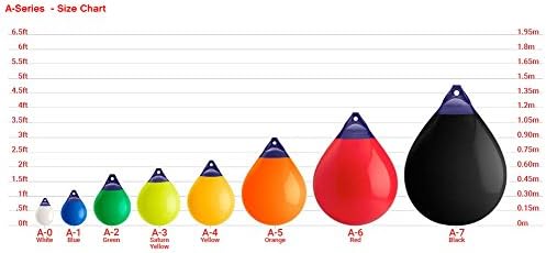 A-4 buoys measure 20.5 in. diameter by 27 in. tall with 1.125 in. ropehold eye diameter