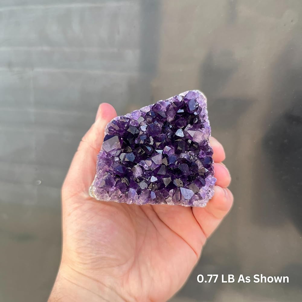 [الارتفاع التقريبي] 3 إلى 10 بوصات + طول، حسب الوزن المختار. كل حجر فريد من نوعه، مع بلورات أرجوانية بأحجام مختلفة وطاقة كبيرة.