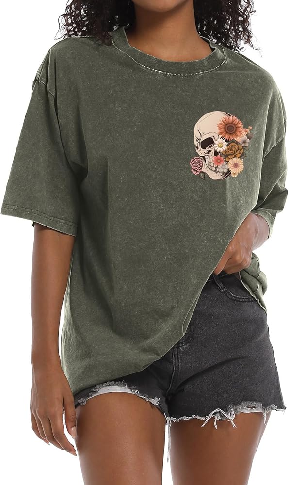 【الخامة: هذه القمصان ذات الجمجمة القوطية للنساء مصنوعة من القطن بنسبة 100%، هذه التي شيرتات الفضفاضة ذات التصميم الهيكلي العتيق للنساء فائقة النعومة وملاءمة مثالية! نسيج ناعم ومريح وخفيف الوزن ومسامي وقابل للتمدد مثالي للارتداء اليومي الكاجوال المريح.