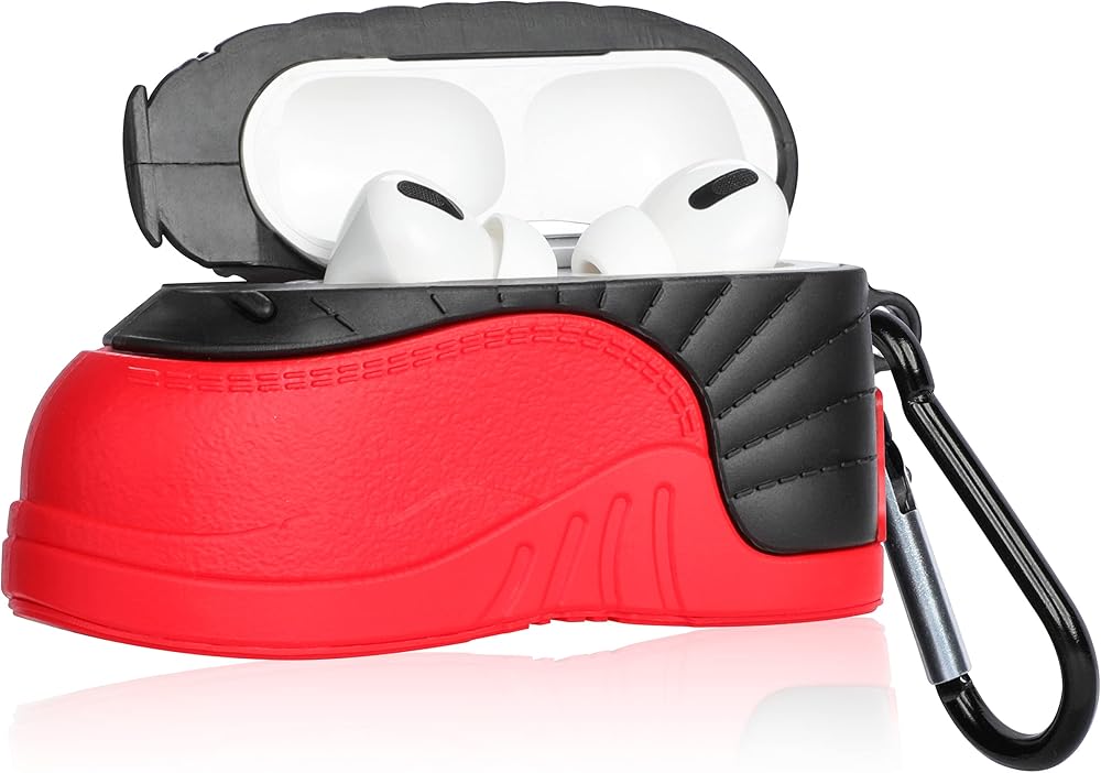 حافظة Lupct Fashion لـ AirPod Pro 2019/Pro 2 Gen 2022، حافظات تغطية لطيفة ومضحكة ورائعة للرجال والأولاد والبنات المراهقات والنساء، شخصية ممتعة ثلاثية الأبعاد عصرية وأنيقة جدًا لـ AirPods Pro Air Pods Pro (حذاء أسود أحمر)