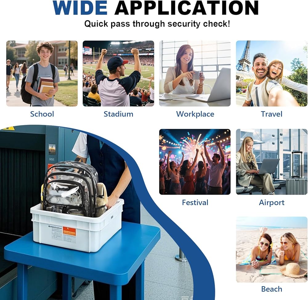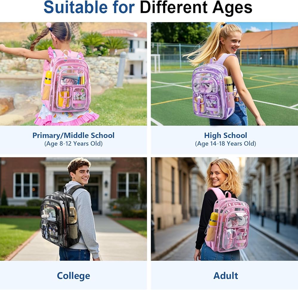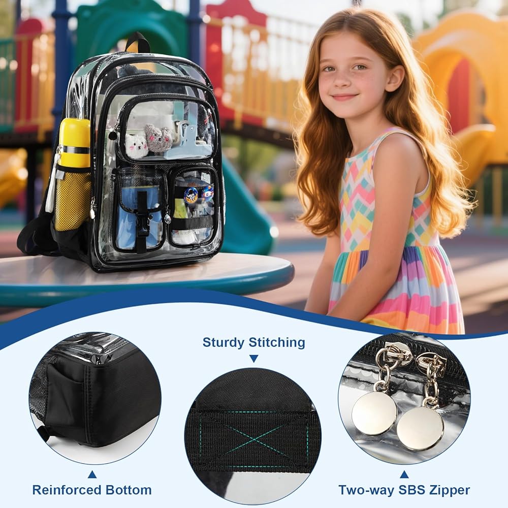 🎒【فحص أمان سريع】: حقائب الظهر الشفافة لأطفال المدارس مصنوعة من مادة PVC السميكة المقاومة للماء بسمك 0.5 مم، ومقاومة للماء، ومقاومة للاهتراء، وسهلة التنظيف. يتيح لك التصميم الشفاف المرور عبر الأمان بسرعة دون الحاجة إلى فتح حقيبتك. مناسبة لمناسبات متعددة مثل المدرسة، العمل، السفر، الحفلات الموسيقية، المطارات، الأحداث الرياضية، الأحداث الخارجية، المشي لمسافات طويلة، التخييم، الشواطئ.