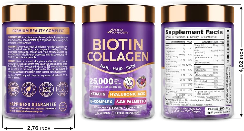 علكات بنكهة التوت وخالية من السكر - اكتشف قوة البيوتين وأظافر الشعر وفيتامينات البشرة للنساء مع فيتامينات الكولاجين والبيوتين للبالغين، وهو خيار رائد بين فيتامينات الشعر للنساء. لا تدعم هذه العلكة الشعر القوي فحسب، بل تعمل أيضًا على تعزيز صحة أظافرك وبشرتك. إضافة مثالية لروتينك اليومي!