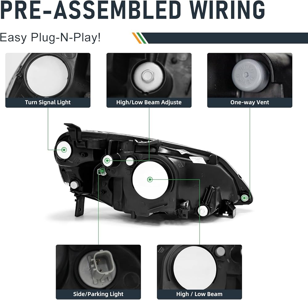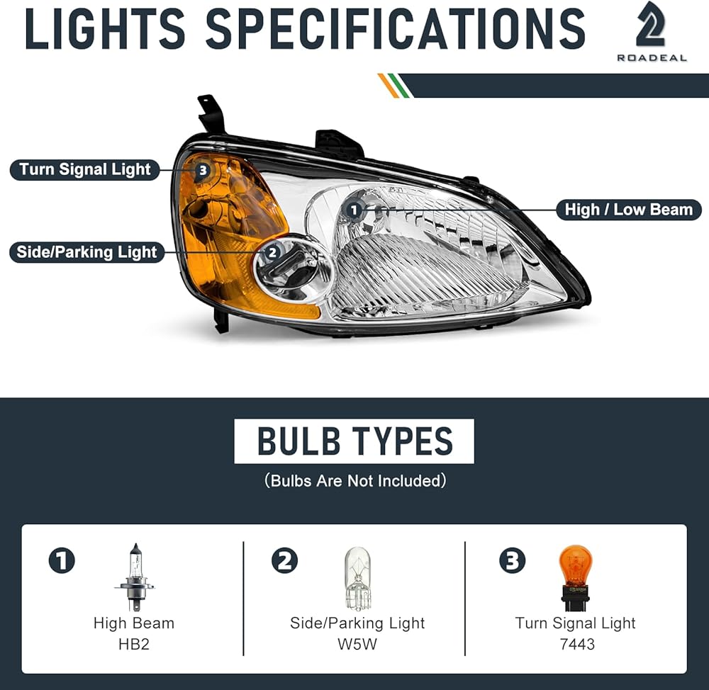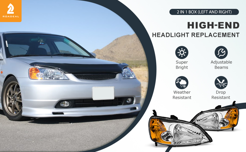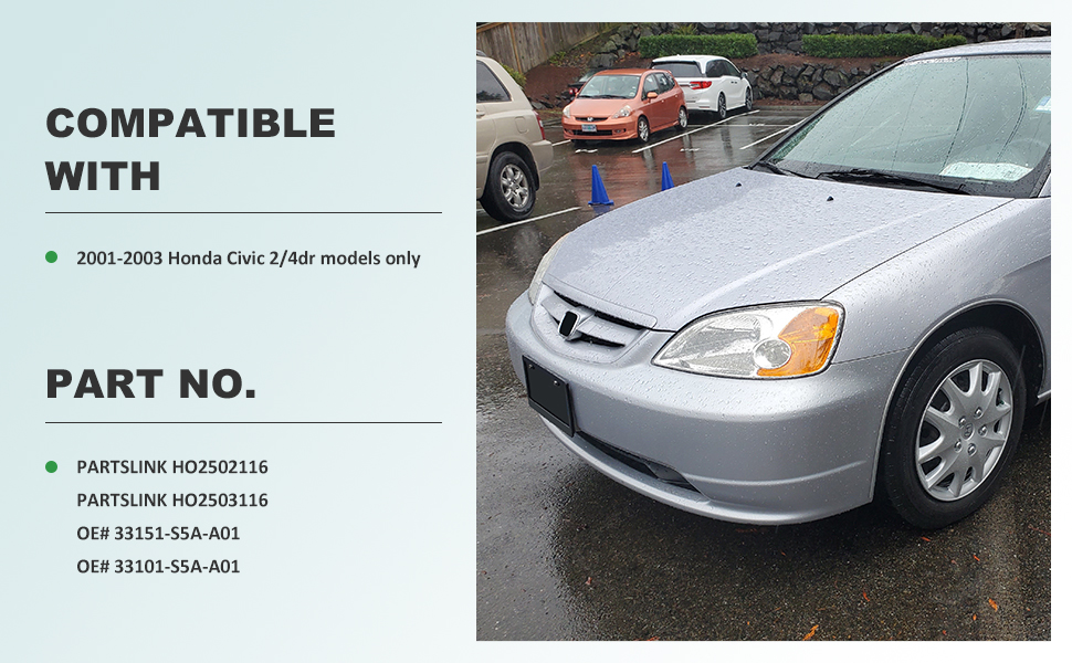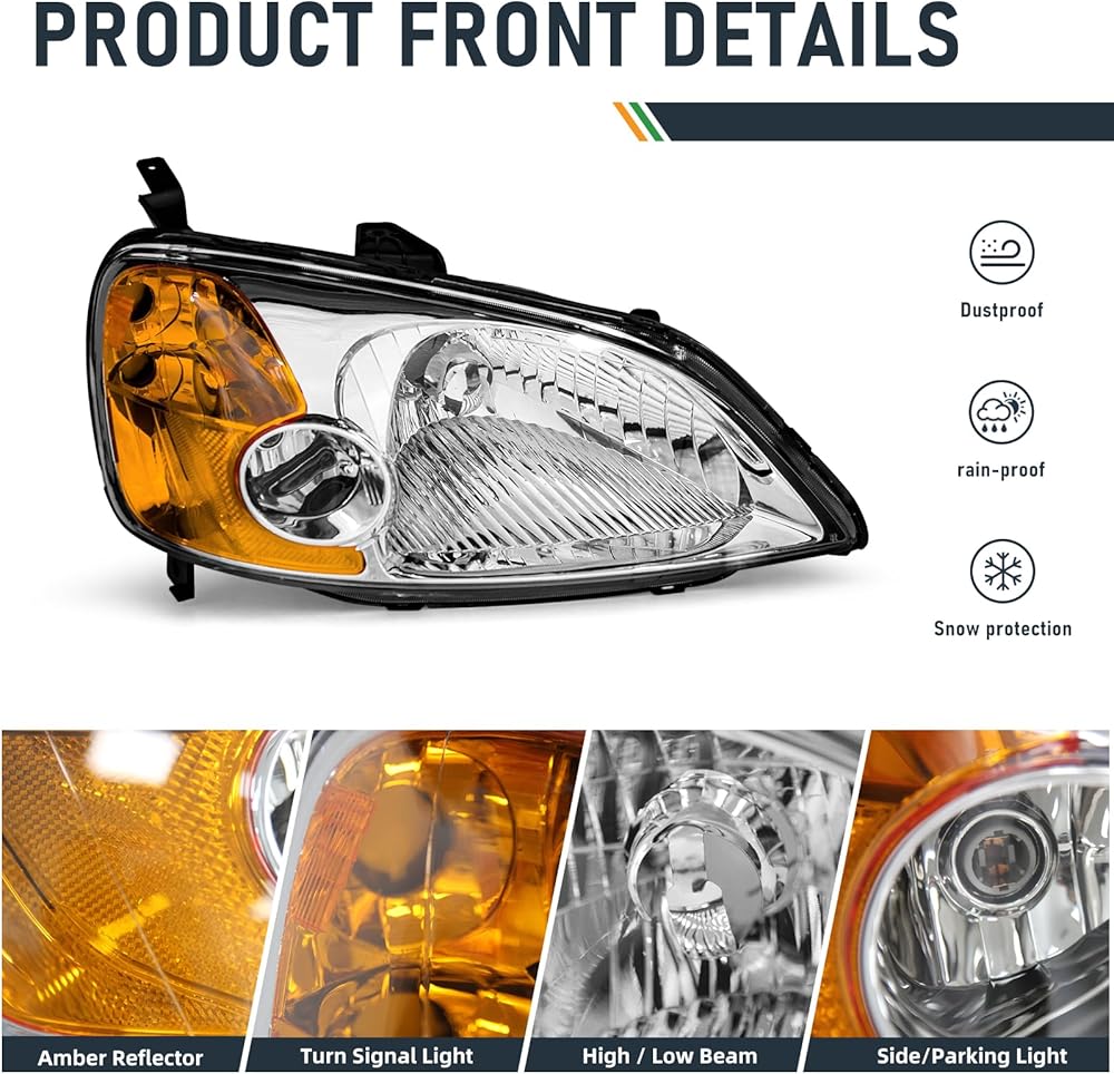 【تركيب مثالي للقطع الأصلية】مجموعة المصابيح الأمامية 100% مناسبة تمامًا لنوع OE 2001-2003 Honda Civic 2/4 أبواب. باعتبارنا شركة مصنعة حاصلة على شهادة ISO، فإننا نقدم فقط منتجات عالية الجودة حاصلة على شهادات DOT وSAE.