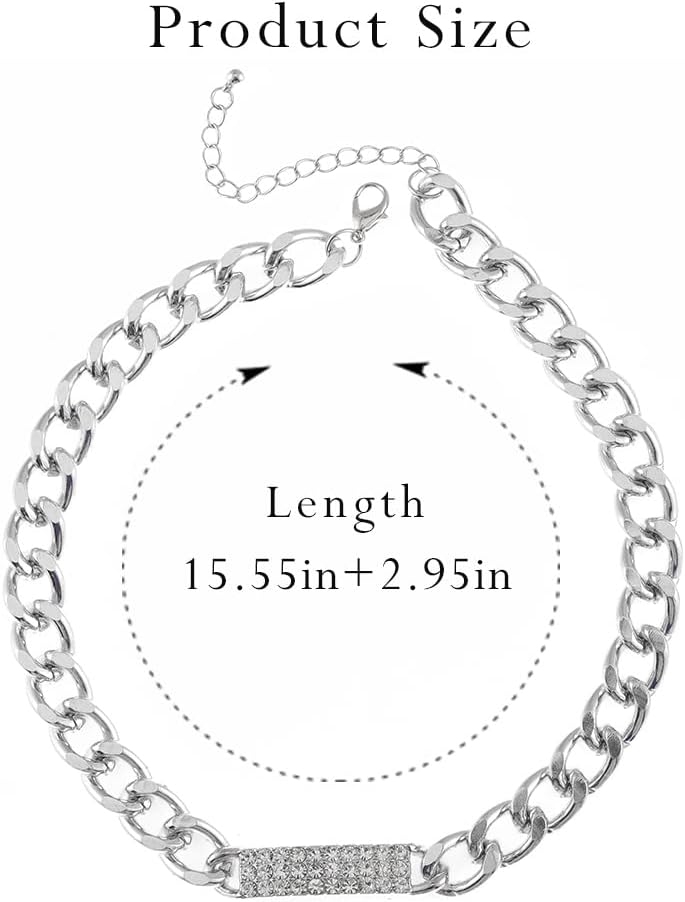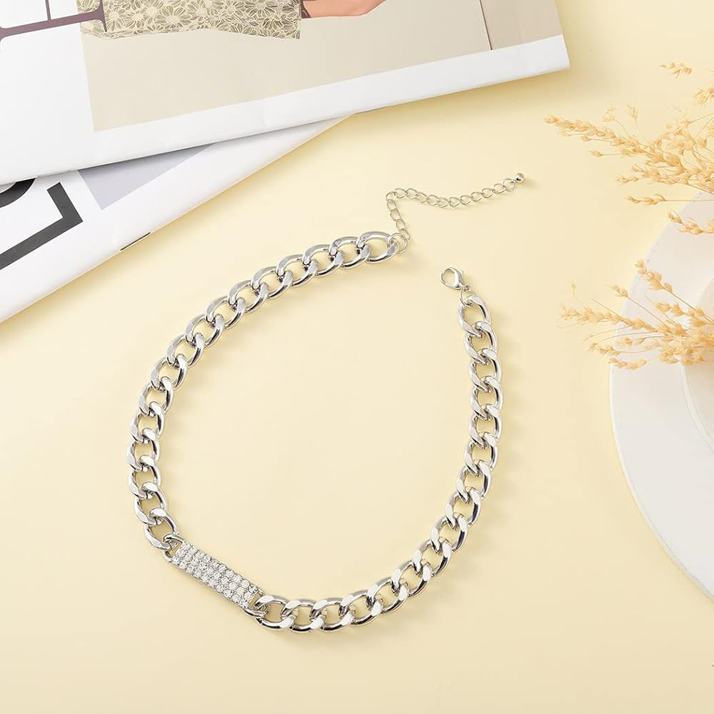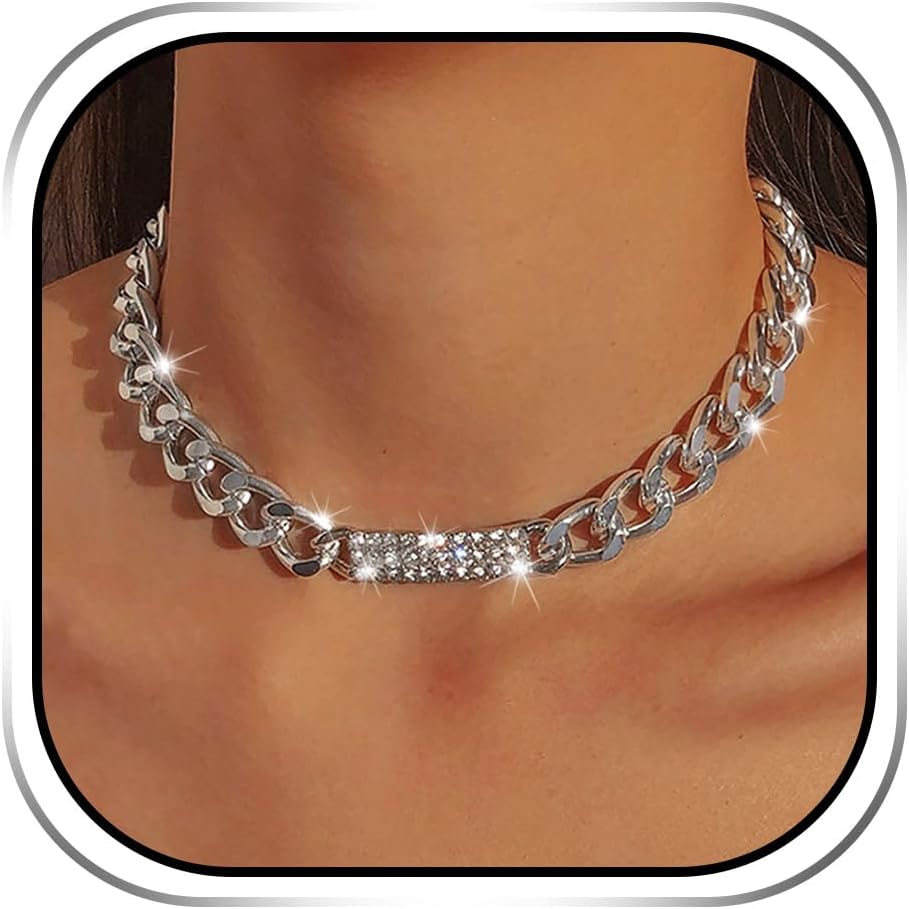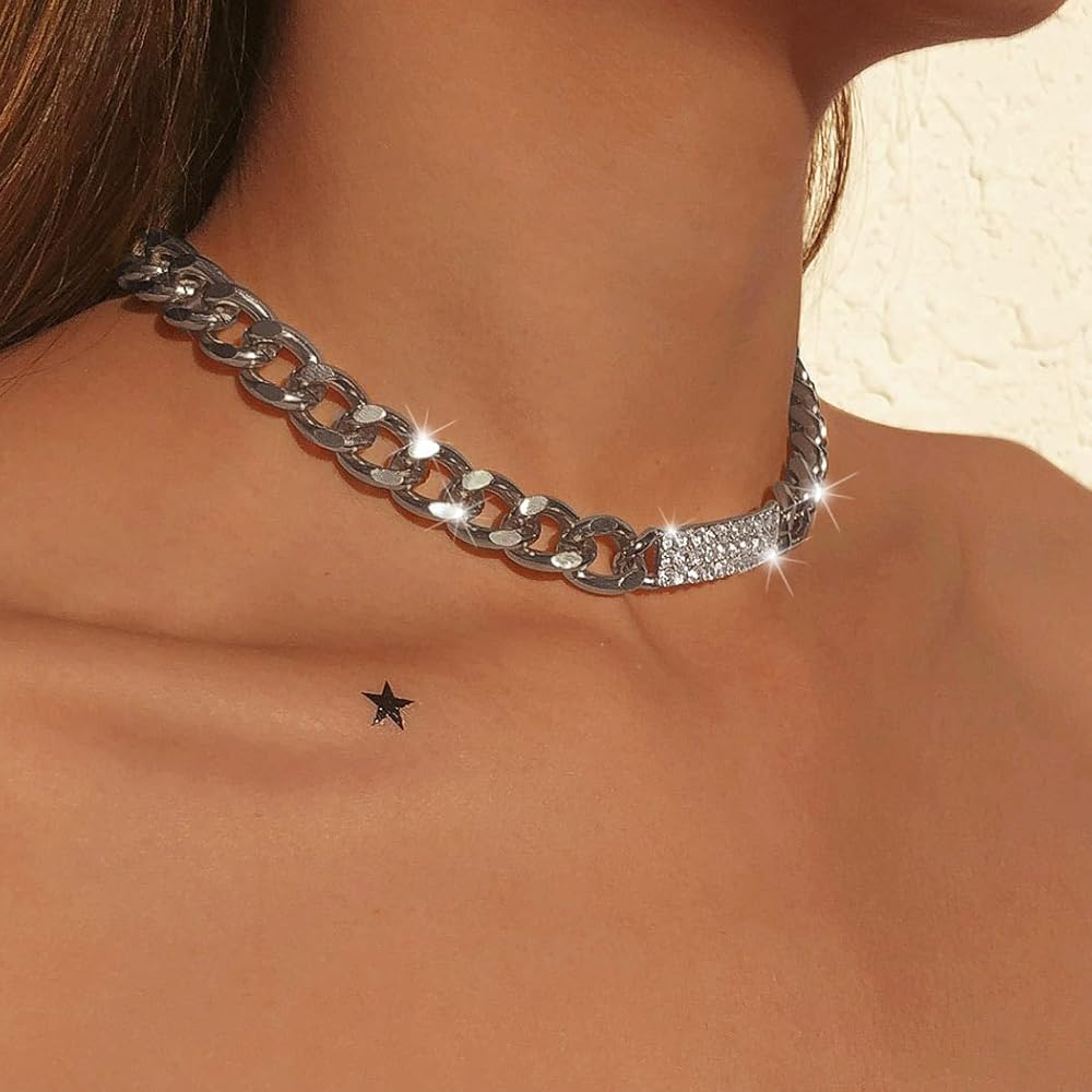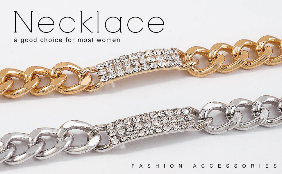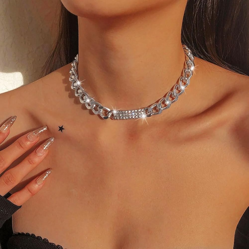 - قلادة فضية مكتنزة مصنوعة من خليط معدني وحجر الراين، خفيفة الوزن ومريحة في الارتداء