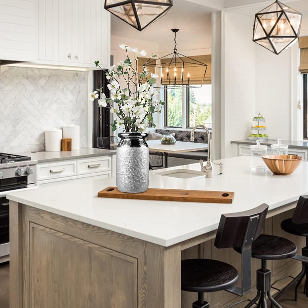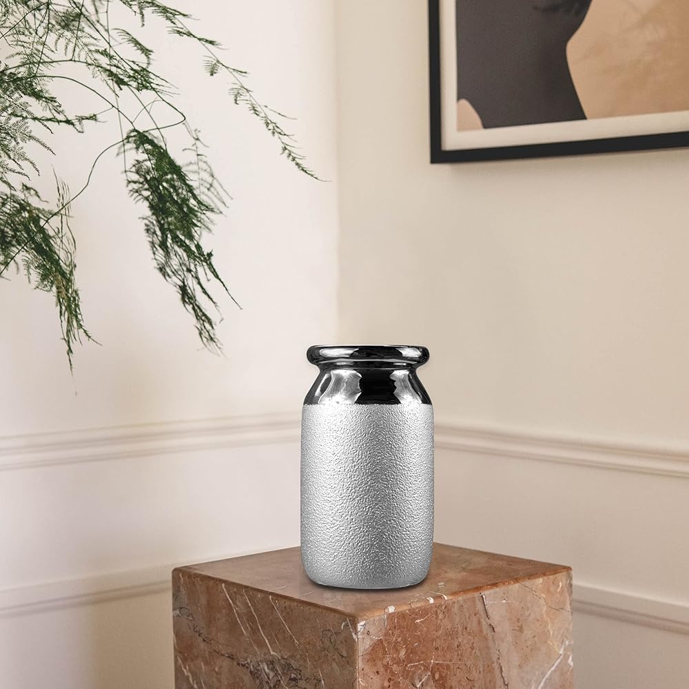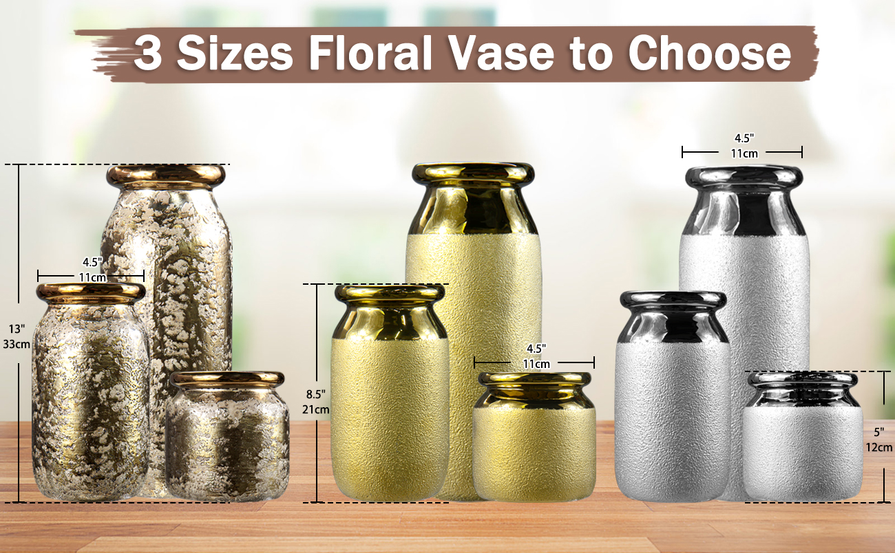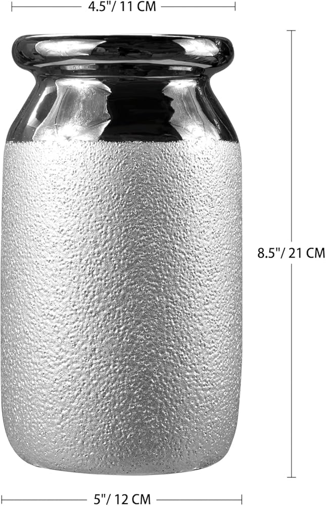【مزهرية زهور فضية】: سطح مزهرية الزهور المزخرفة هذه مطلي بالكهرباء بطبقة فضية، ويوجد العديد من الأنماط غير المنتظمة المذهلة والنقاط الفضية على سطحها، وتصميمها يجعل الترتيب بأكمله مذهلًا بكل بساطة. تضيف هذه المزهريات الطويلة نكهة فنية إلى الديكور الداخلي الخاص بك، ويمكن أن تمنحك حياة ملونة وتظهر ذوقك الذي لا تشوبه شائبة