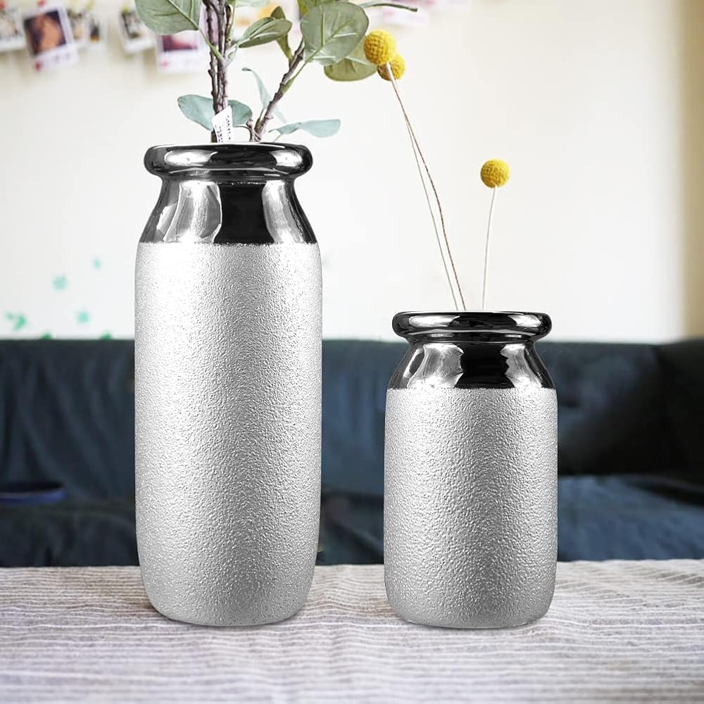 【جودة ممتازة】: المزهرية الزهرية مصنوعة من السيراميك عالي الجودة، مع تقنية النار الرائعة، ولها خط ناعم ويصعب التخلص منها بشكل حاد أو بهتان أو طلاء. بالإضافة إلى ذلك، يحتوي الجزء السفلي من المزهرية الفضية على 3 وسادات مضادة للانزلاق، والتي يمكن أن تمنع سقوطها من الطاولة. نظرًا لارتفاع درجة الحرارة، سيكون نمط كل مزهرية خزفية مختلفًا قليلاً