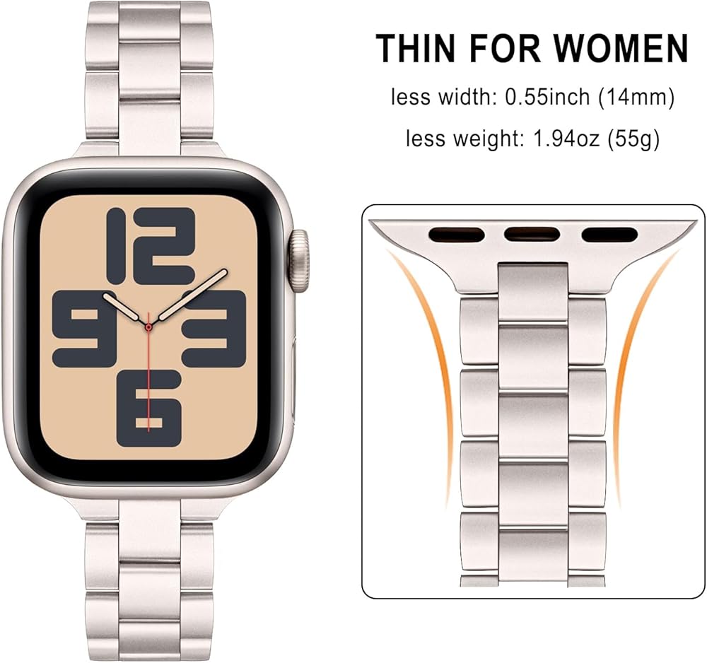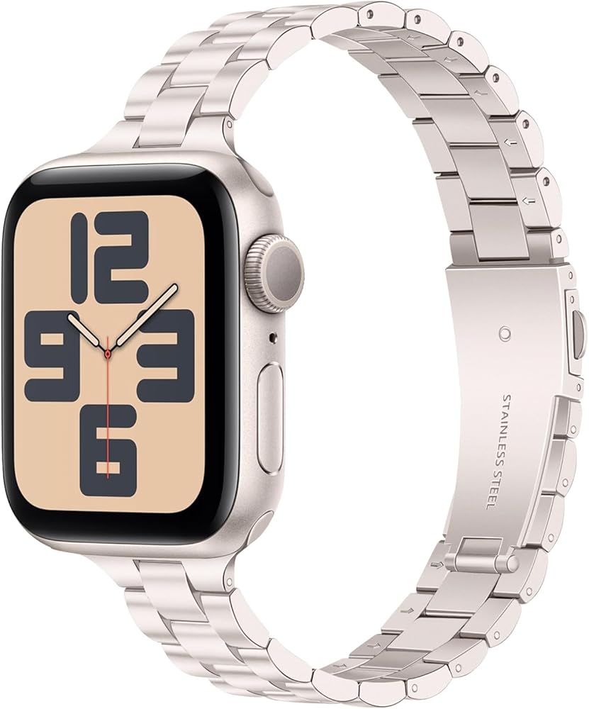 حزام رفيع من TRUMiRR لساعة Apple Series 9 8 7 41 مم / SE (الجيل الثاني) 40 مم ضوء النجوم، حزام بديل للنساء من الفولاذ المقاوم للصدأ لساعة iWatch SE 6 5 4 3 2 1 40 مم 38 مم