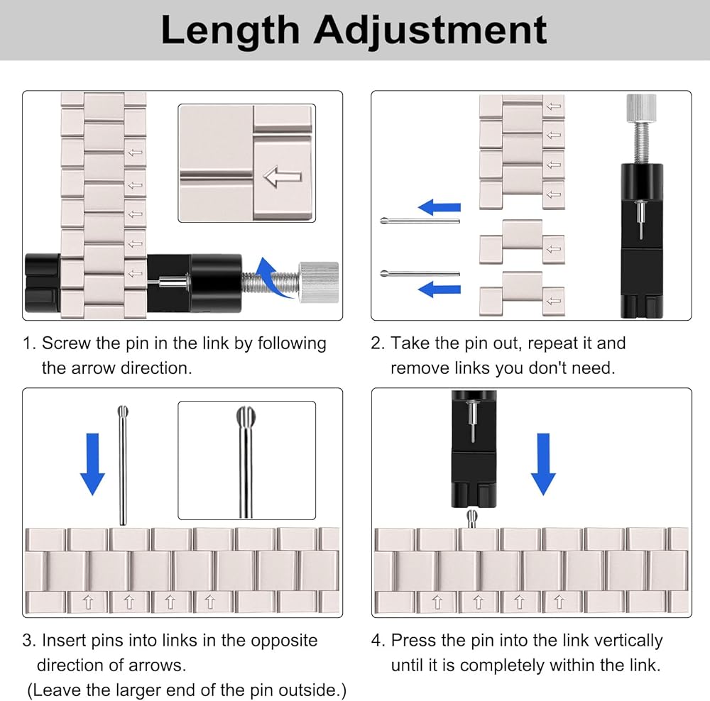 • تغيير المقاس بسهولة: يناسب المعصم من 5.3 بوصة إلى 8.1 بوصة (135 مم إلى 205 مم)، ويغطي معظم معاصم النساء. بدون بذل جهود لإزالة الروابط باستخدام مزيل الارتباط والتعليمات الخاصة بنا.
