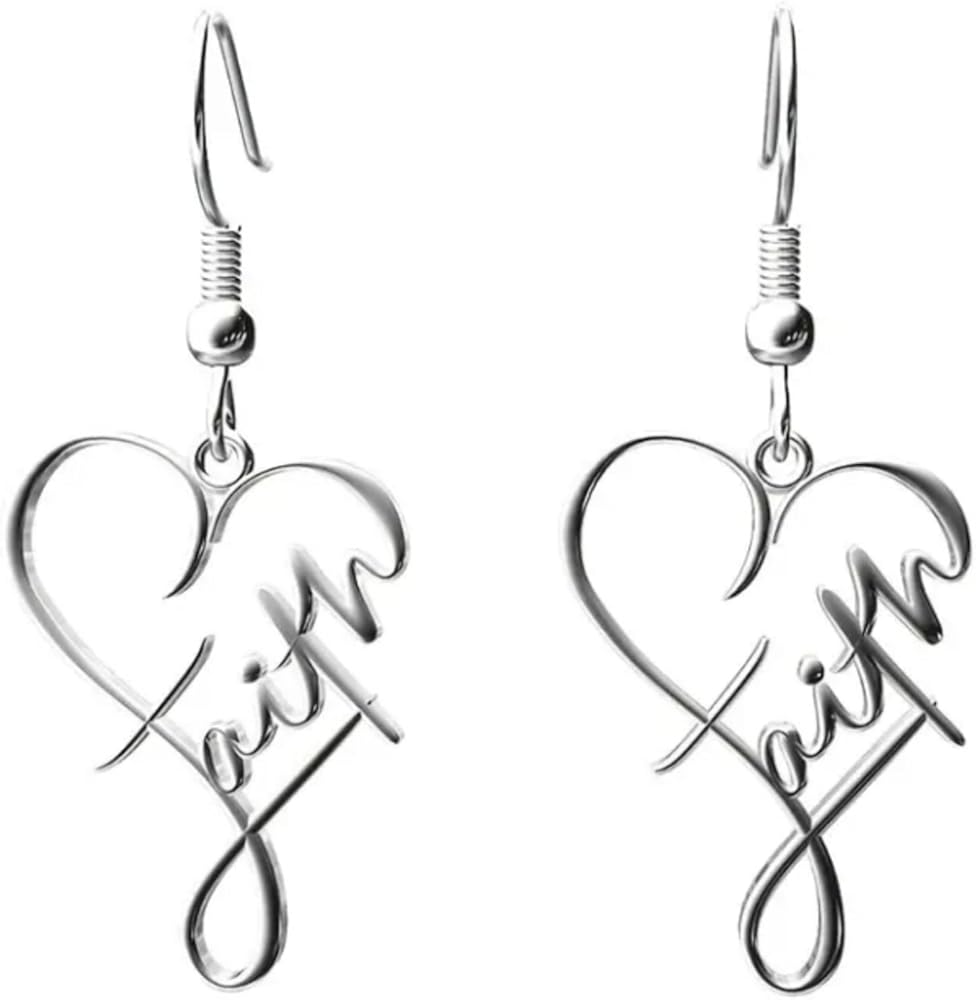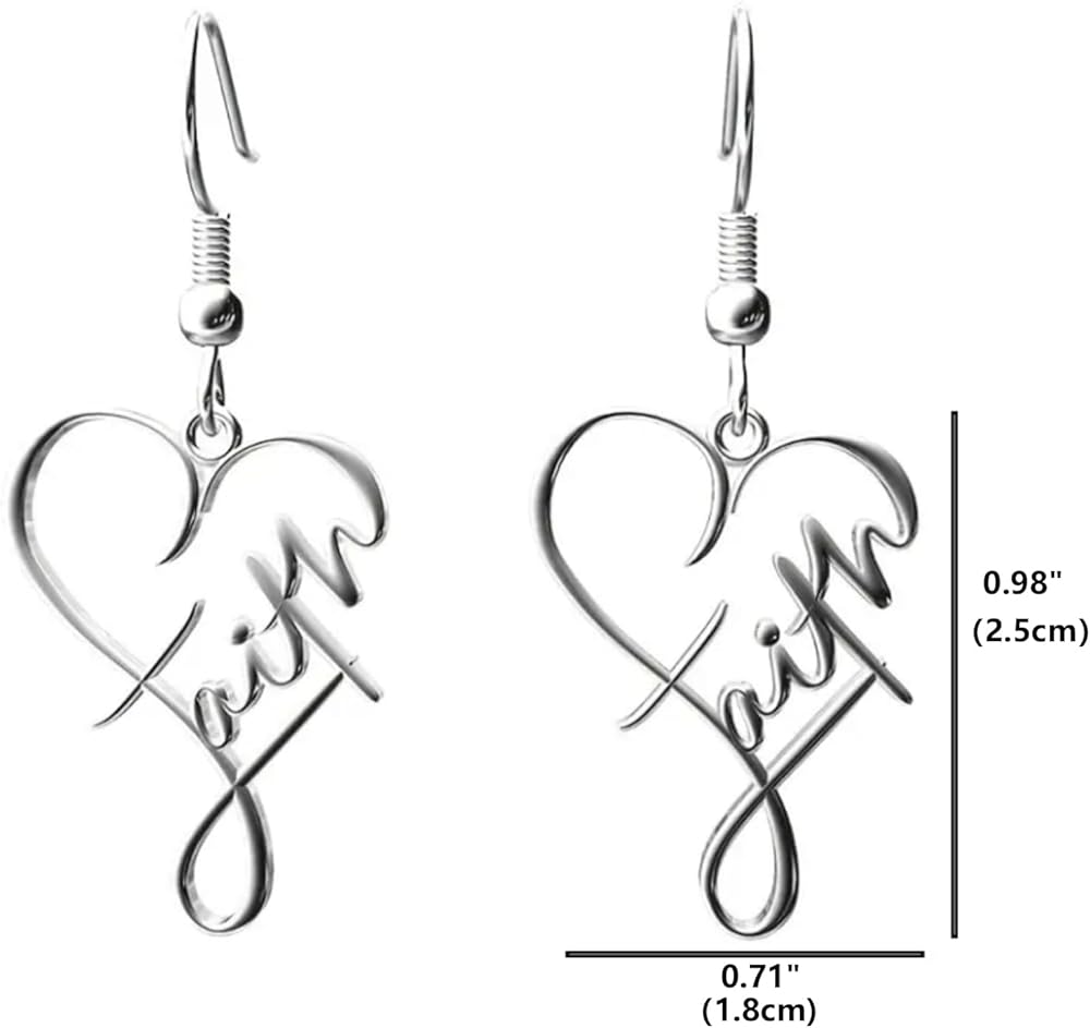 Silver Faith Earrings, Love Heart Earrings, Hoop Earrings, Faith Inspirational Dangle Earrings, Valentine Jewelry Gift for Women