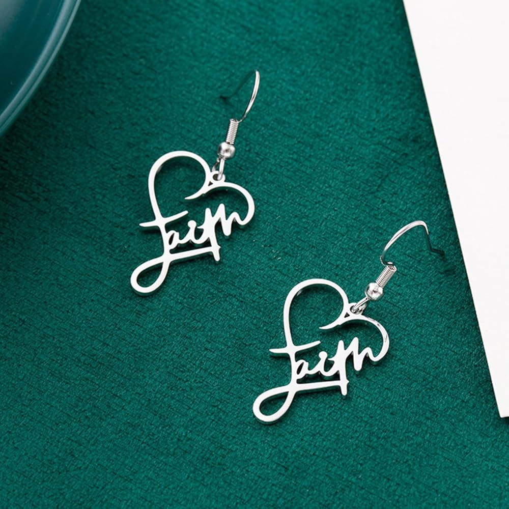 • ♥Chic Design: The elegant FAITH letter-shaped pendants add a touch of sophistication to your look, making these earrings a versatile choice for both casual and formal occasions.