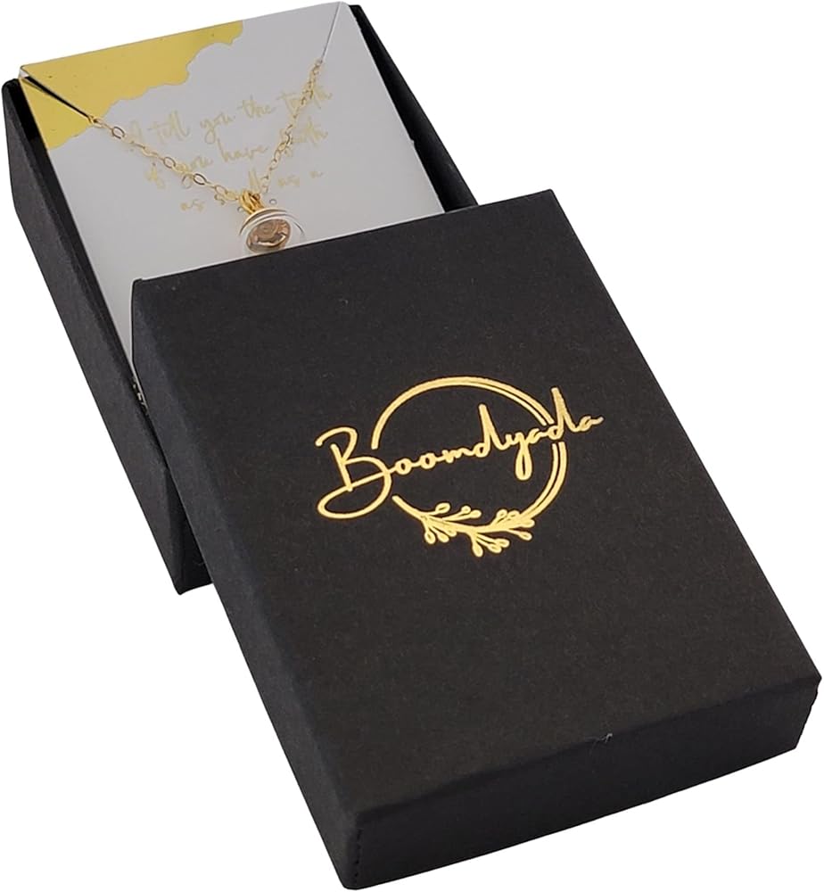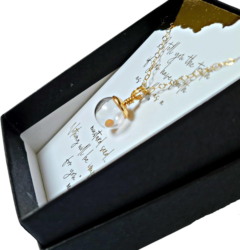 قلادة من بذور الخردل من الذهب عيار 14 قيراط للنساء، قلادة ملفوفة بالسلك، هدية في علبة مع بطاقة كتابية ملهمة