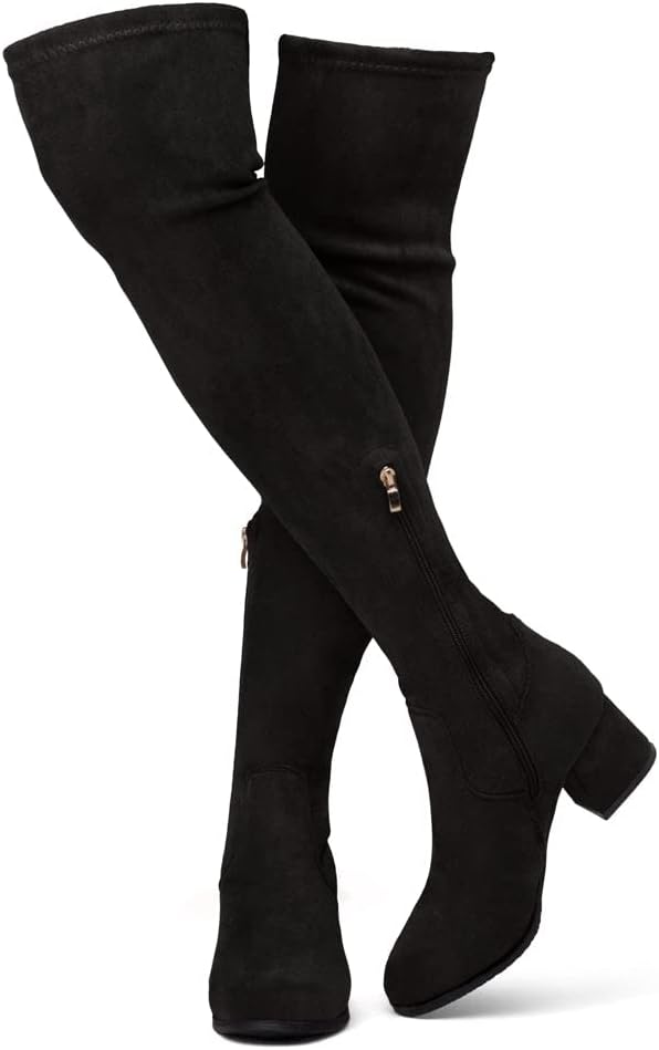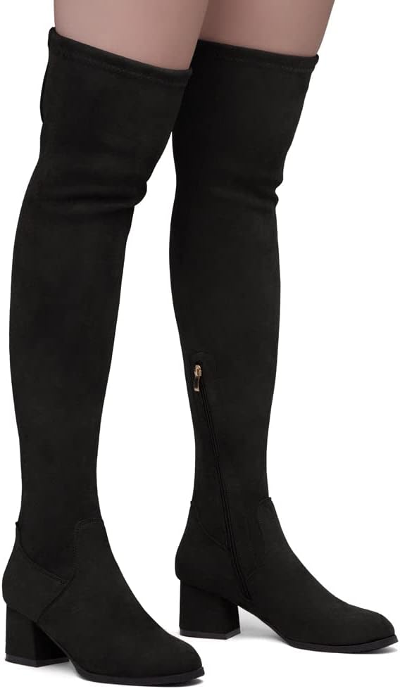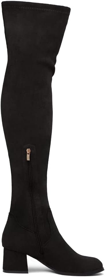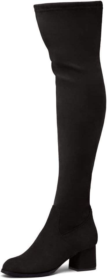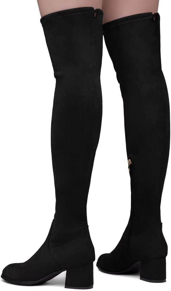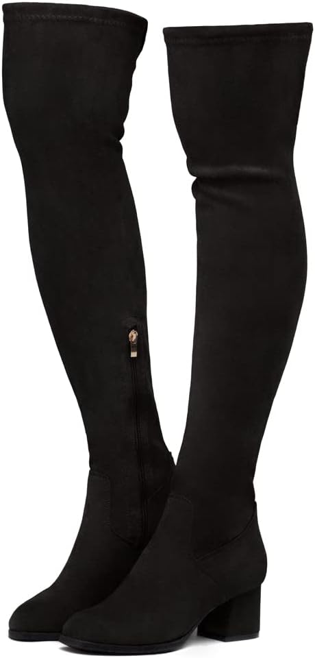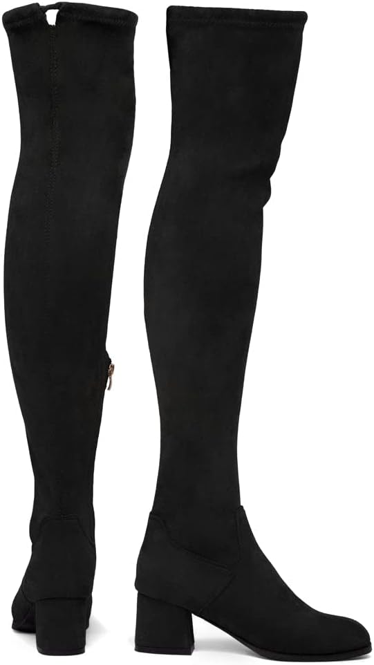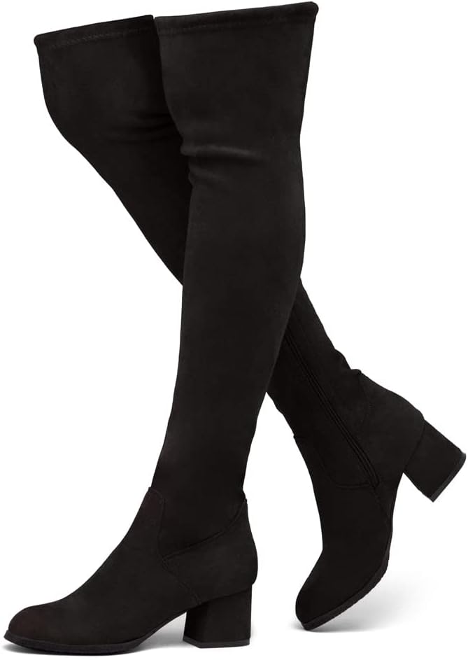 ملاءمة وأناقة مثالية: تتميز الأحذية متعددة الاستخدامات حتى الفخذ بجزء علوي بسيط وأنيق مصنوع من جلد سويدي نباتي وكعب منخفض مكدس يضيف بعض الكمال لمظهرك. مثالي للمهرجانات والارتداء على مدار العام!
