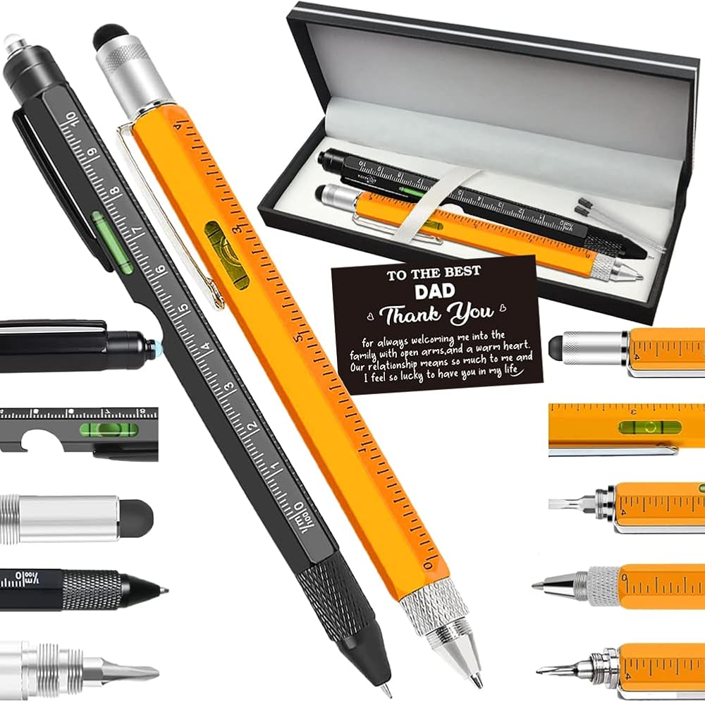 مجموعة أقلام متعددة الأدوات مكونة من قطعتين، هدايا عيد الأب للأب، هدايا أقلام أدوات رائعة مع قلم لمس، مسطرة، مستوى، قلم حبر جاف، شاشة تعمل باللمس، هدية عيد الأب من زوجة الابن والابن
