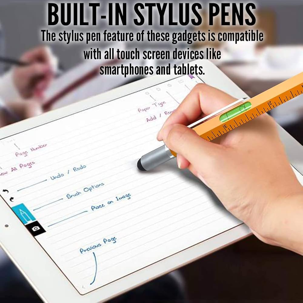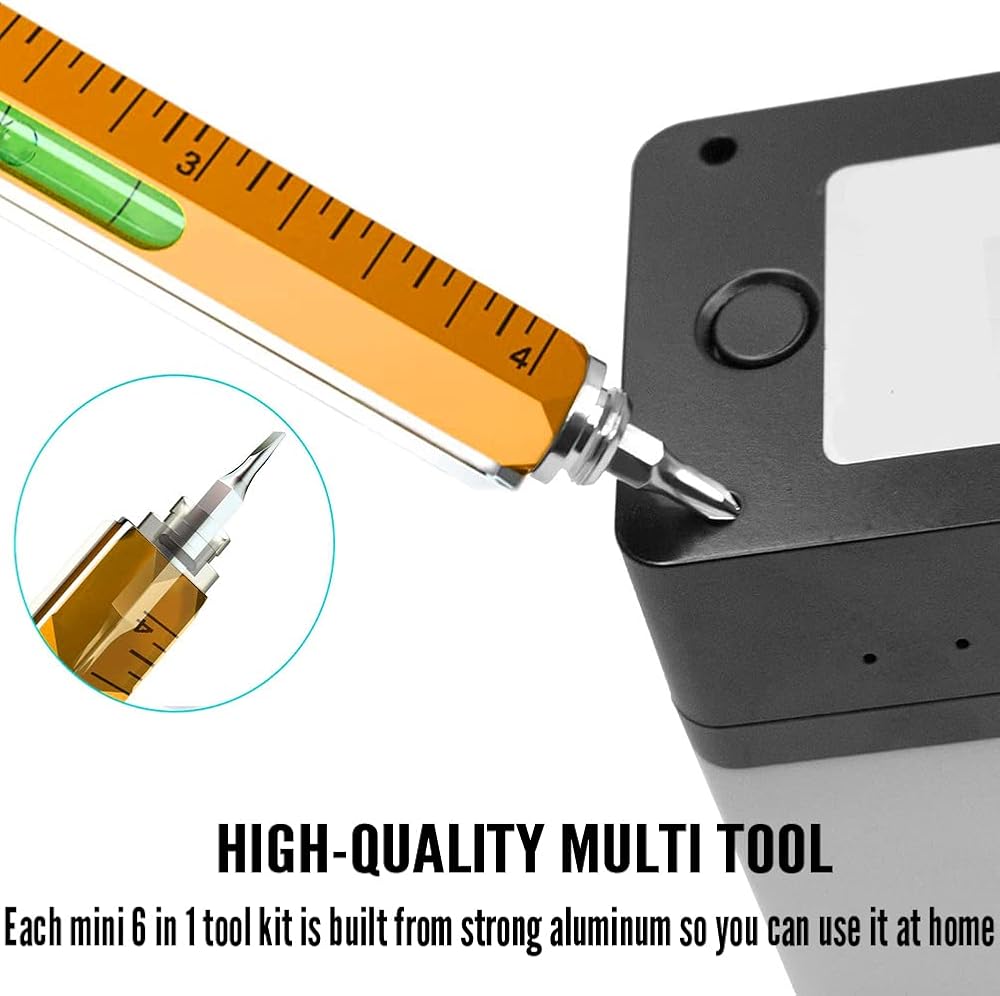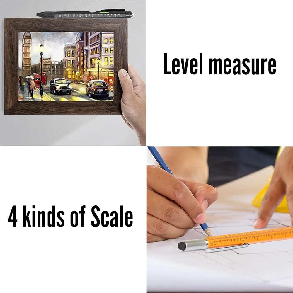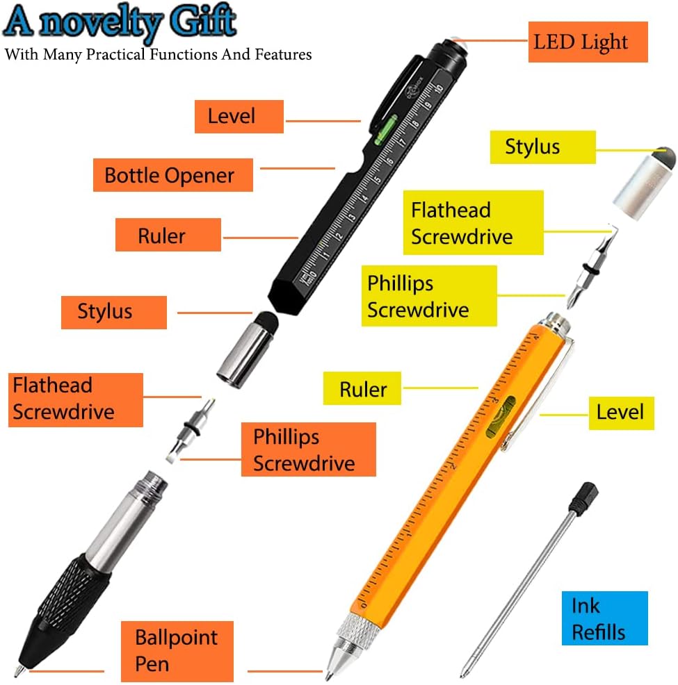 أقلام متعددة الوظائف: سوف تحصل على قلمين متعددي الأدوات. هذا نوع جديد من أقلام الأدوات المتعددة. يأتي قلم الأدوات التقنية مع 6 وظائف سهلة الاستخدام للغاية، قلم شاشة اللمس، مسطرة، مستوى، مفك براغي فيليبس ورأس مسطح، هدية أداة قلم حبر جاف متعدد الوظائف.