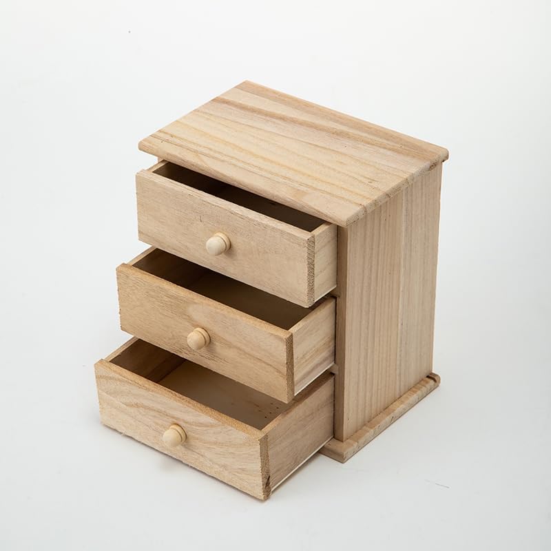 Sturdy Storage: Made of solid Tung wood, this desktop box provides durable storage for small items on your desk or tabletop with its 3 compartments.