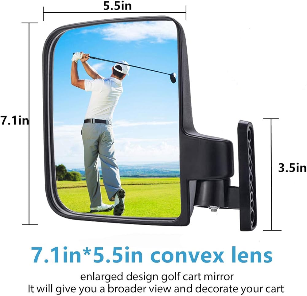 مرآة جانبية لعربة الجولف من WLOOD مقاس 7.0 بوصة ارتفاع × 5.5 بوصة عرض، قابلة للطي وقابلة للتعديل، سهلة الضبط من الأمام والخلف للحصول على الزاوية البصرية المرغوبة؛