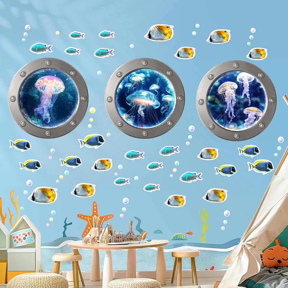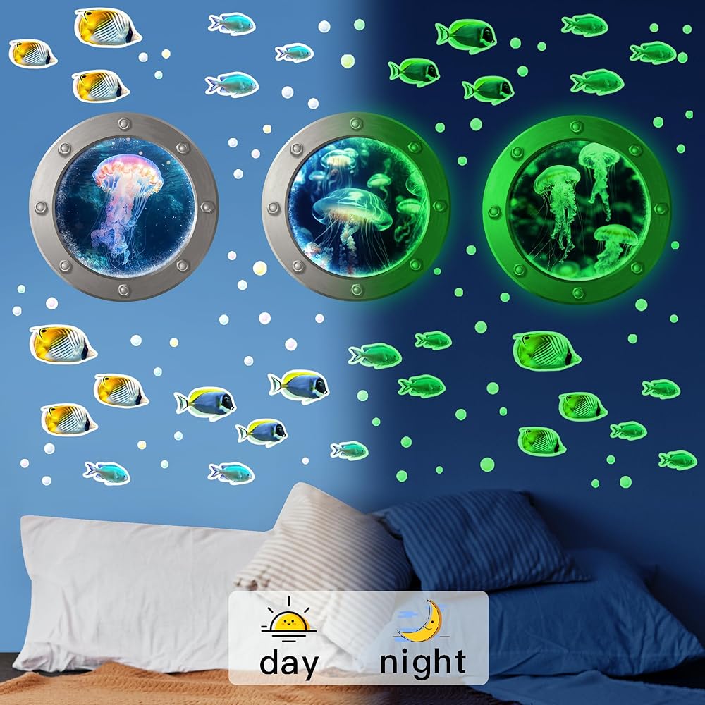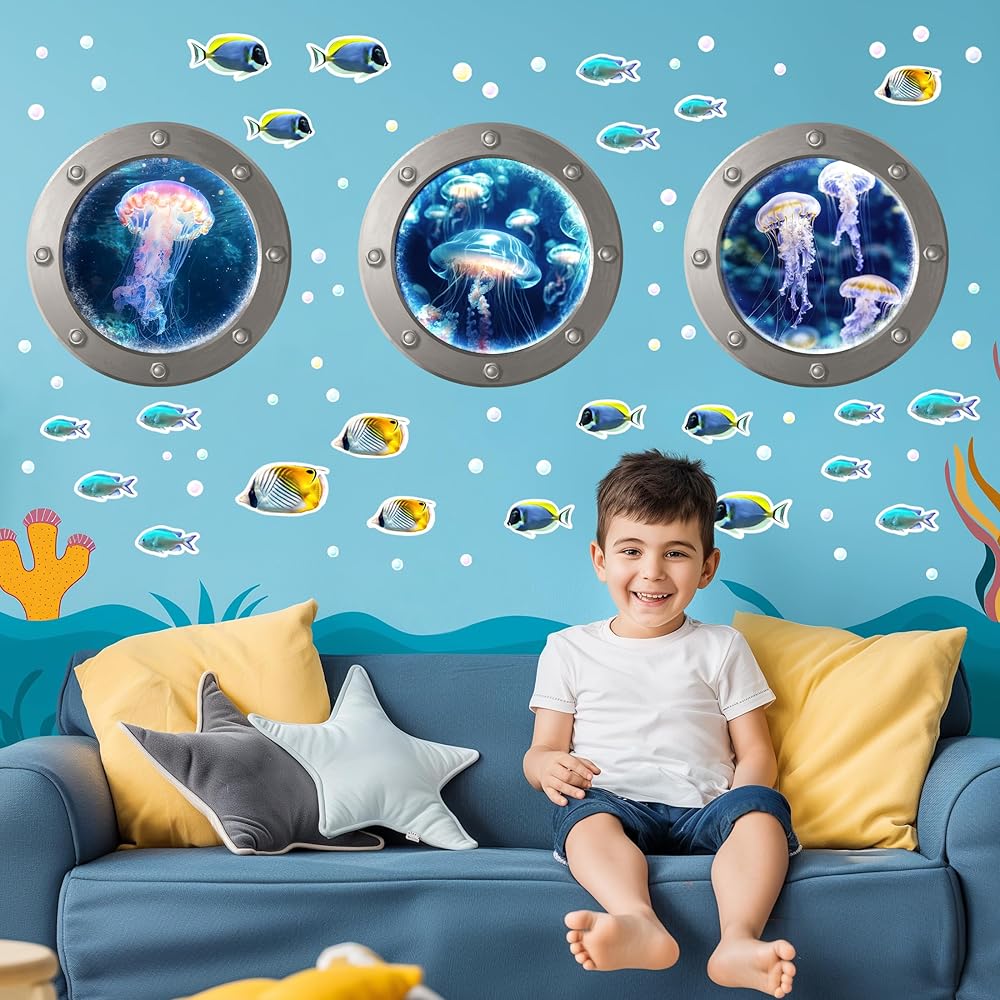 【استخدام واسع】يمكنك وضع ملصقات الحائط ذاتية اللصق على شكل سمكة تحت البحر لغرفة المعيشة، والأثاث، وجدار التلفزيون، والحمام، وغرفة النوم، والفصل الدراسي، والمكتبة، وممر المدخل، وأبواب الخزانة، والزجاج، والنوافذ، والمرآة والمزيد.