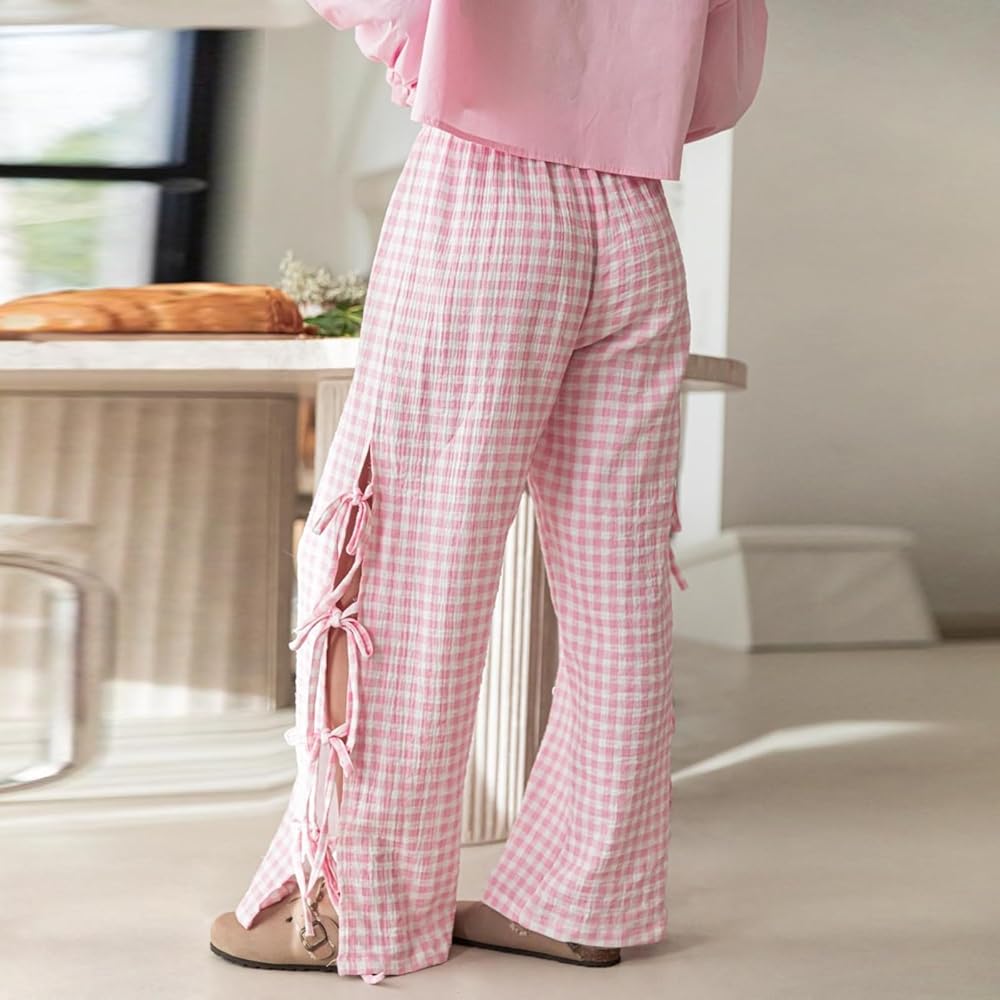 النساء Y2k مخطط طباعة السراويل عادية فضفاضة تناسب ارتفاع الخصر الرباط واسعة الساق البوب ​​السراويل خمر الشارع الشهير صالة السراويل