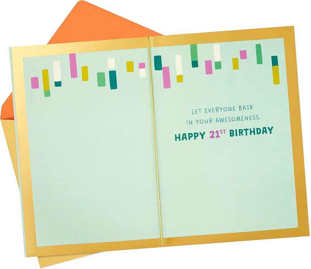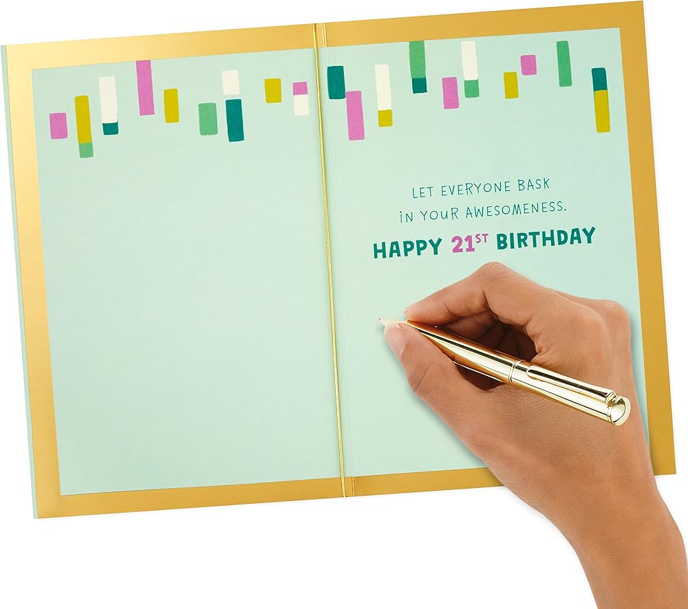 A birthday as exciting as this one deserves a great birthday card. This 21st birthday card is perfect for any amazing person in your life, whether it's your son, daughter, niece, nephew, grandson, granddaughter, neighbor, or friend. A great accompaniment to a 21st birthday gift, and works equally as well as a money or gift card holder. The Hallmark brand is widely recognized as the very best for greeting cards, gift wrap, and more. For more than 100 years, Hallmark has been helping its customers make everyday moments more beautiful and celebrations more joyful.