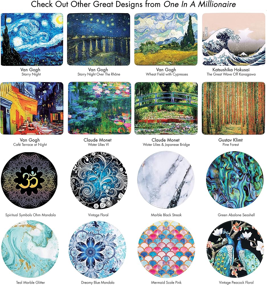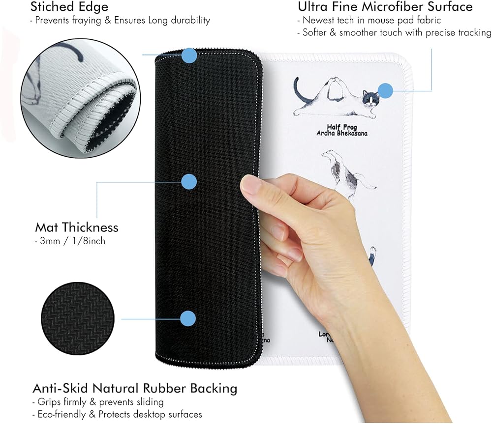لوحة ماوس فنية وراحة فائقة: لوحة ماوس مع تحف فنية جميلة تتميز بسطح حريري ناعم للغاية من الألياف الدقيقة وحواف مخيطة. يوفر تتبعًا سلسًا ودقيقًا وناعمًا جدًا على البشرة. الحواف المخيطة تمنع الاهتراء وتضمن متانة طويلة. القاعدة المطاطية الطبيعية غير القابلة للانزلاق تمسك بقوة وتمنع الانزلاق. مزيج مثالي من الوظيفة والجماليات!