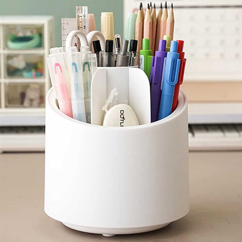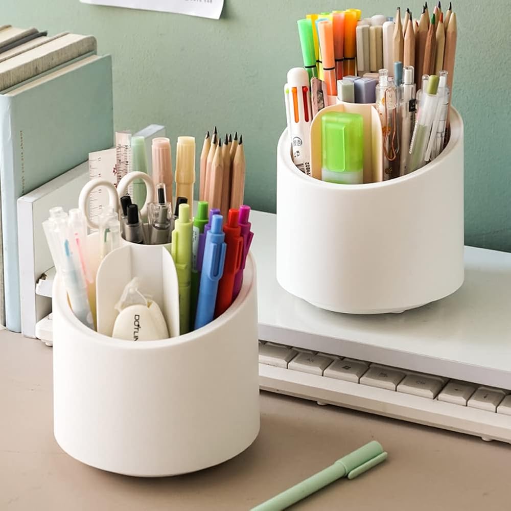 ✎360 Degree Revolving Design: Simply spin this pencil holder to store or take out your things, this storage organizer allows you to keep all of your things within reach. Our office plastic desk organizer with divided 7 compartments that will organize pens, pencils, , ruler, clips, scissors and other office accessories separately.