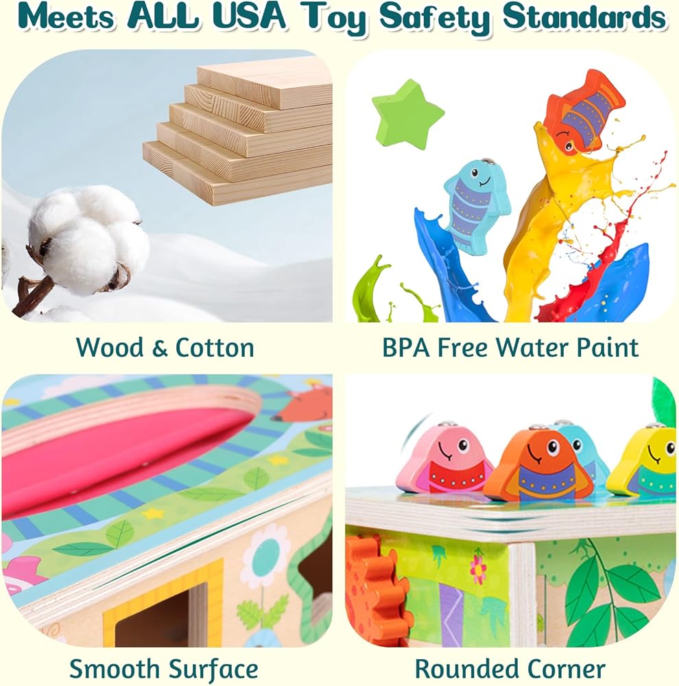 جودة فاخرة: مصنوع بعناية، مكعب الأنشطة 6 في 1 الخاص بنا مصنوع من الخشب الصلب ومزين بطلاء مائي. مع مواد خالية من البيسفينول والرصاص، فإن السطح والزوايا مستديرة ومصقولة بدقة، مما يضمن سلامة طفلك بنسبة 100%. متوافقة مع معايير الألعاب الأمريكية، بما في ذلك CPSIA وASTM F963.