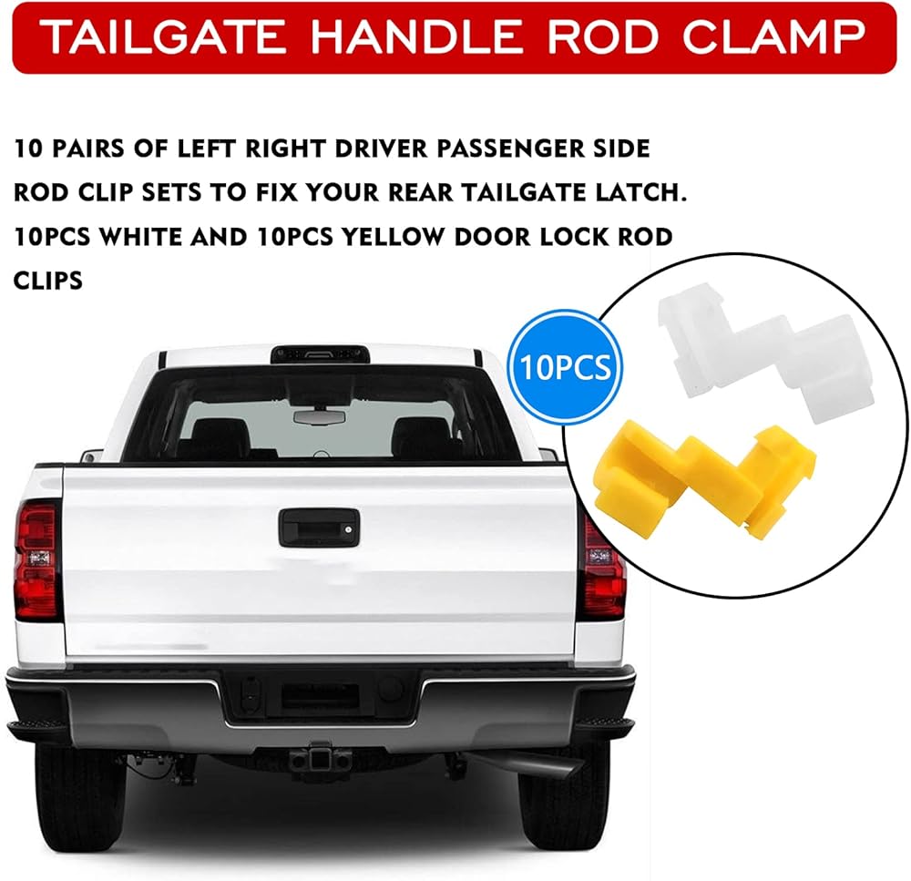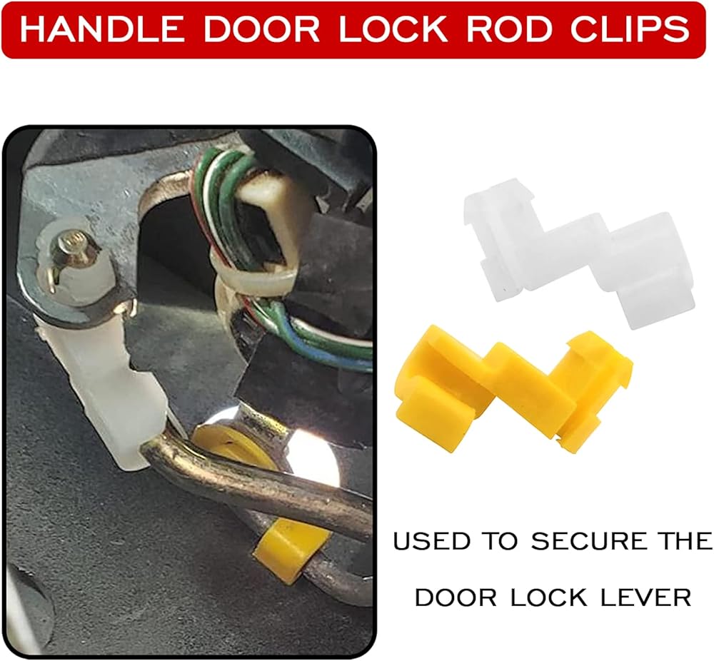 • 【مادة عالية الجودة】مشابك قضيب قفل الباب بمقبض الباب الخلفي مصنوعة من مادة النايلون المتينة، متينة بما يكفي لتحمل ضغط الاستخدام اليومي والظروف البيئية المختلفة لفترة طويلة.