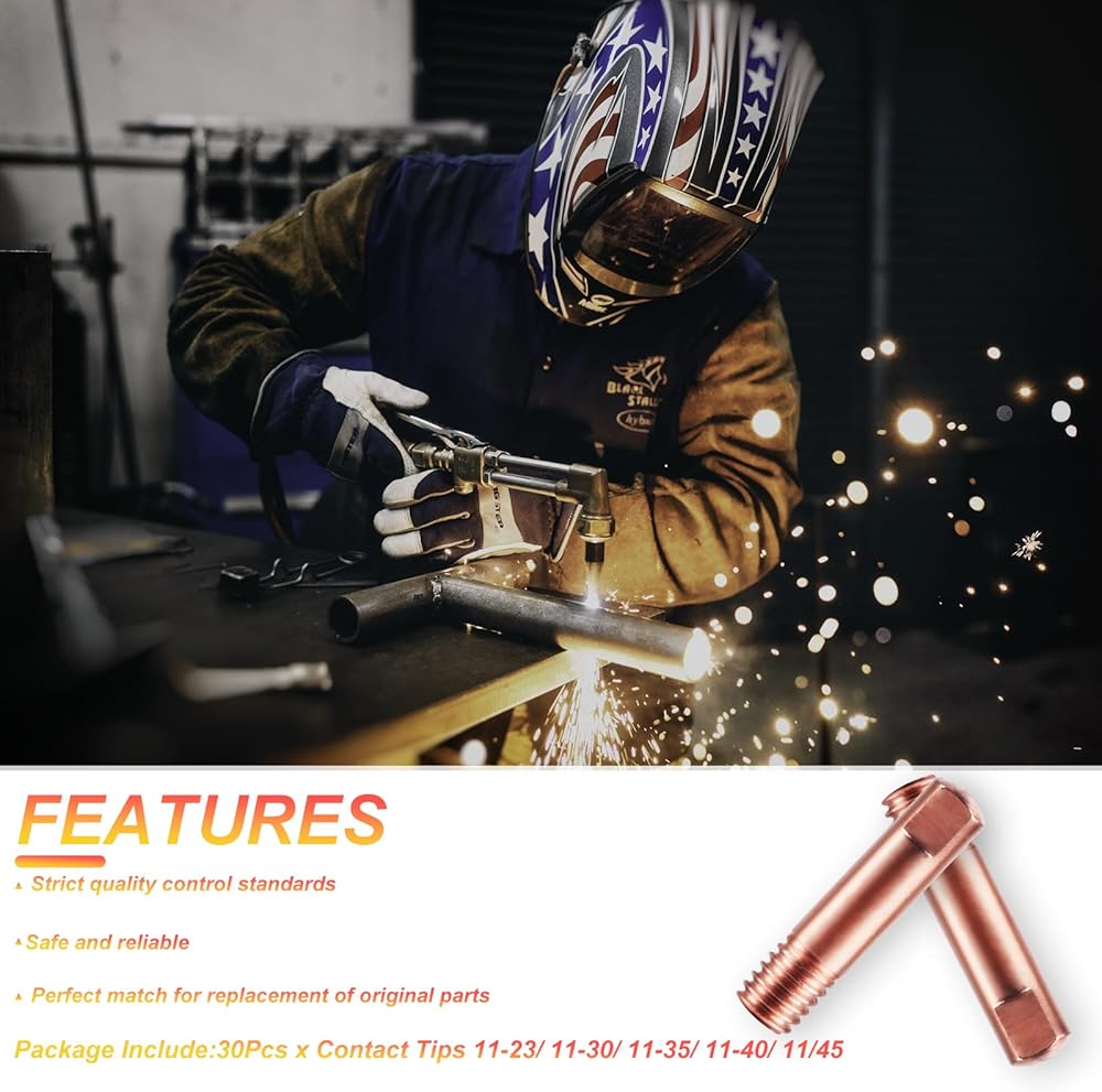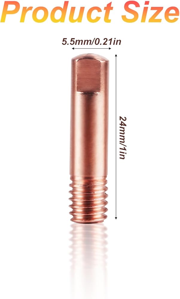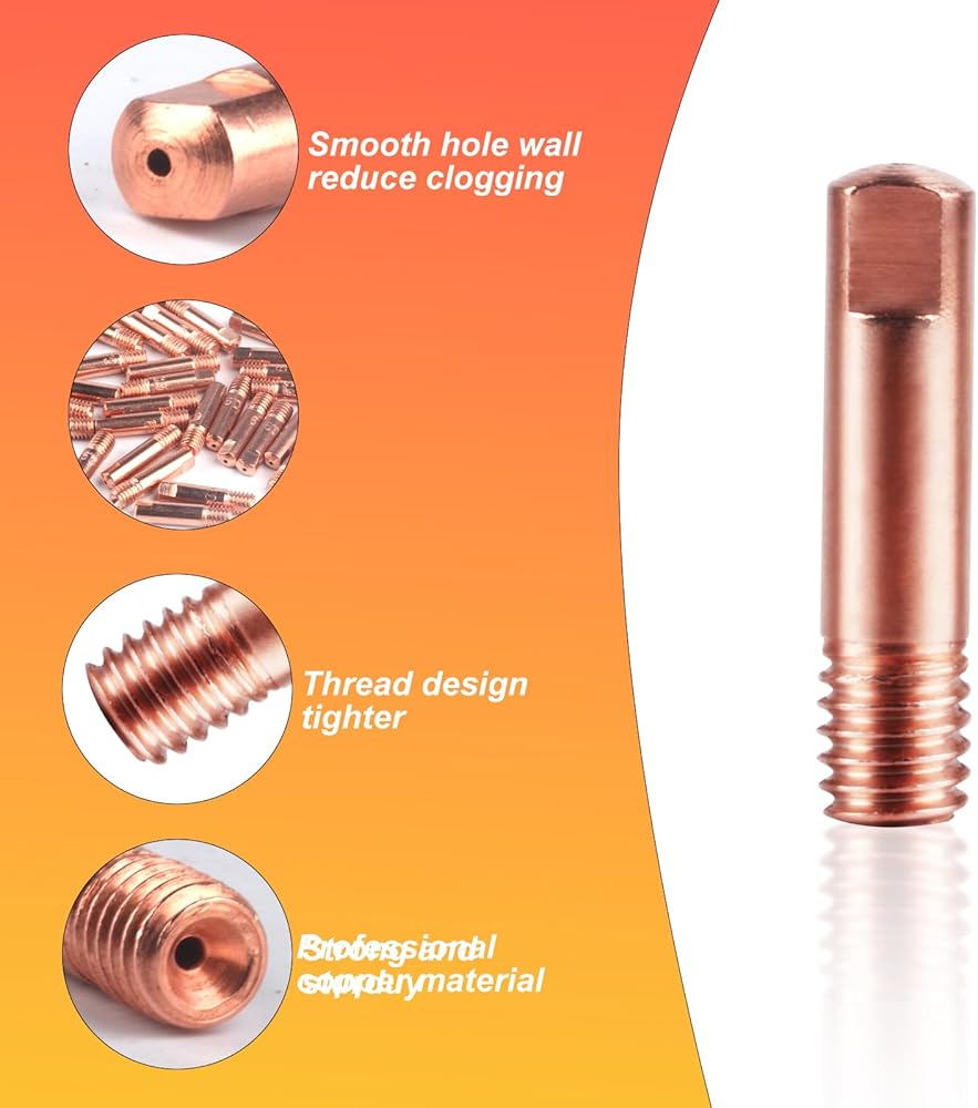 التوافق: تتوافق أطراف الاتصال القياسية مقاس 11-35 (0.035 بوصة) مع بنادق 100L وMini MIG. اعتمادًا على البرميل، استخدم موزع غاز 51 أو موزع غاز 35-50.