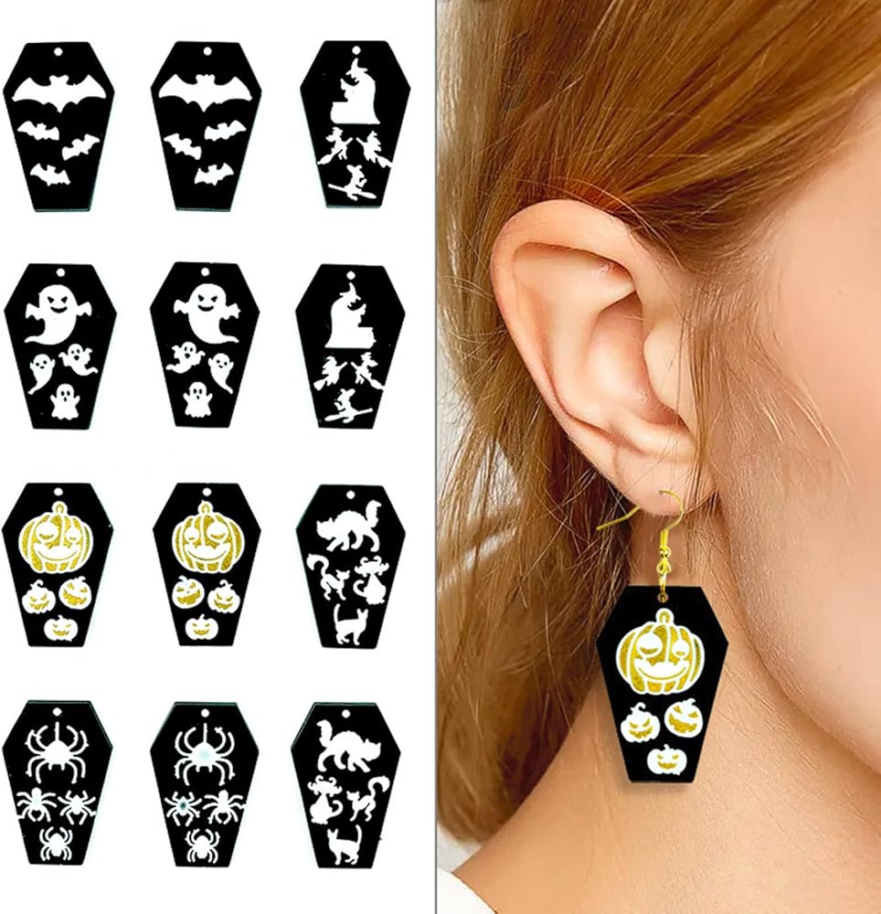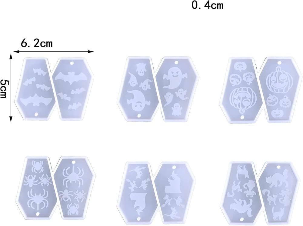 6 قطع من قوالب راتنج حلق الهالوين، سيليكون تابوت اليقطين الساحرة شبح الخفافيش العنكبوت قوالب قلادة المجوهرات، قالب صب راتنجات الايبوكسي لقرط الهالوين، مصنوعات المجوهرات، قلادة سلسلة المفاتيح