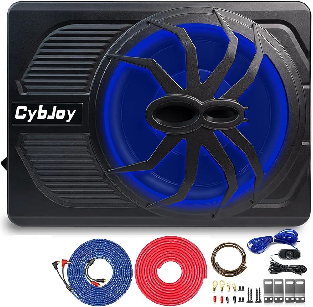 مضخم صوت نحيف أسفل المقعد مقاس 10 بوصات، مضخم صوت مدمج للسيارة بقدرة 800 وات، مضخم صوت للسيارة/الشاحنة، ترقية مع إضاءة محيطة LED زرقاء (مضخم الصوت + مجموعة أسلاك التثبيت)