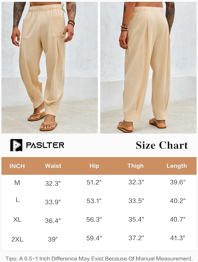 【مطابقة سهلة】: للحصول على مظهر كاجوال أكثر، يمكنك تجربة السراويل الكتانية مع قميص كتان أو تي شيرت أو سترة أو صندل أو أحذية قماشية أو شباشب وما إلى ذلك. هذه السراويل الرجالية الهيبي مناسبة لكل من الرجال والنساء.