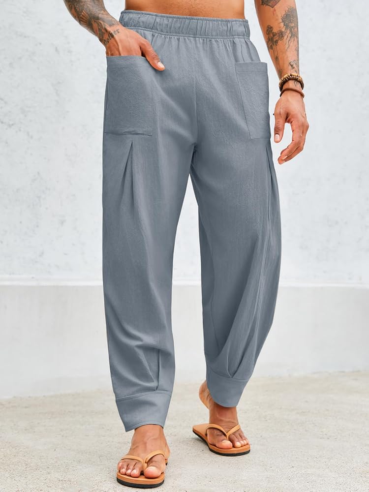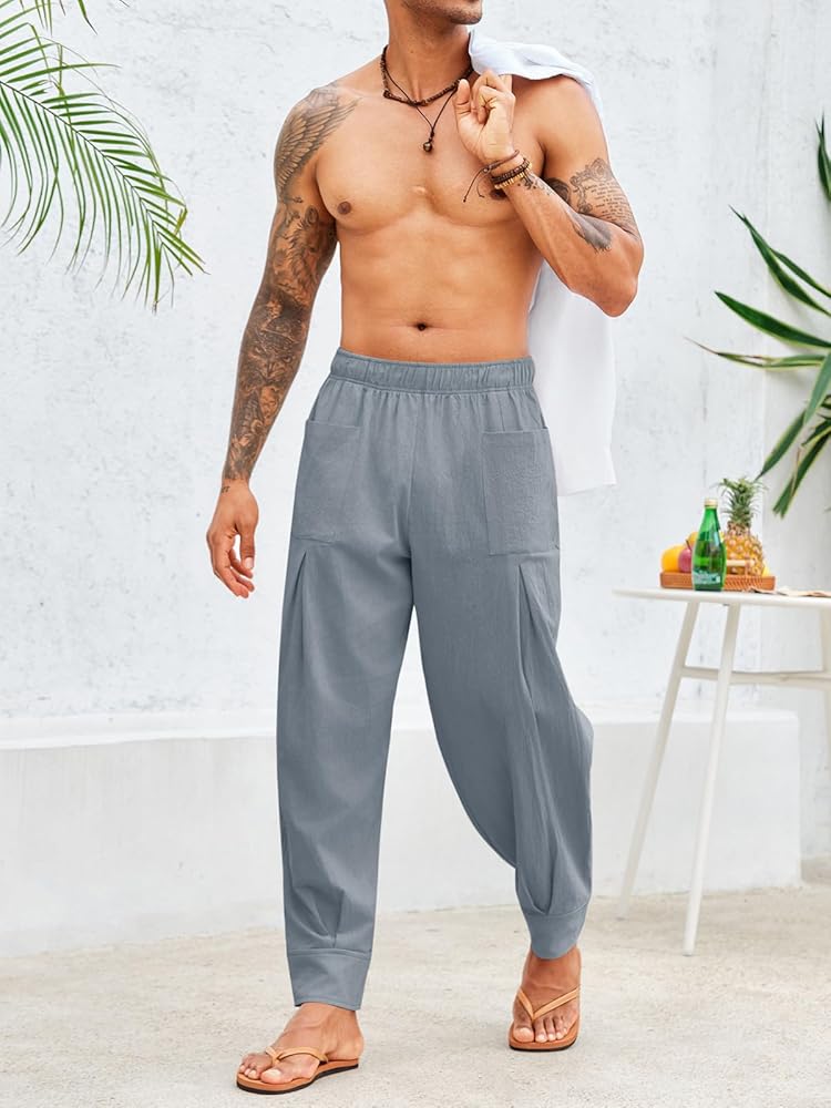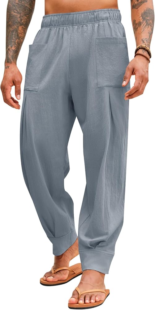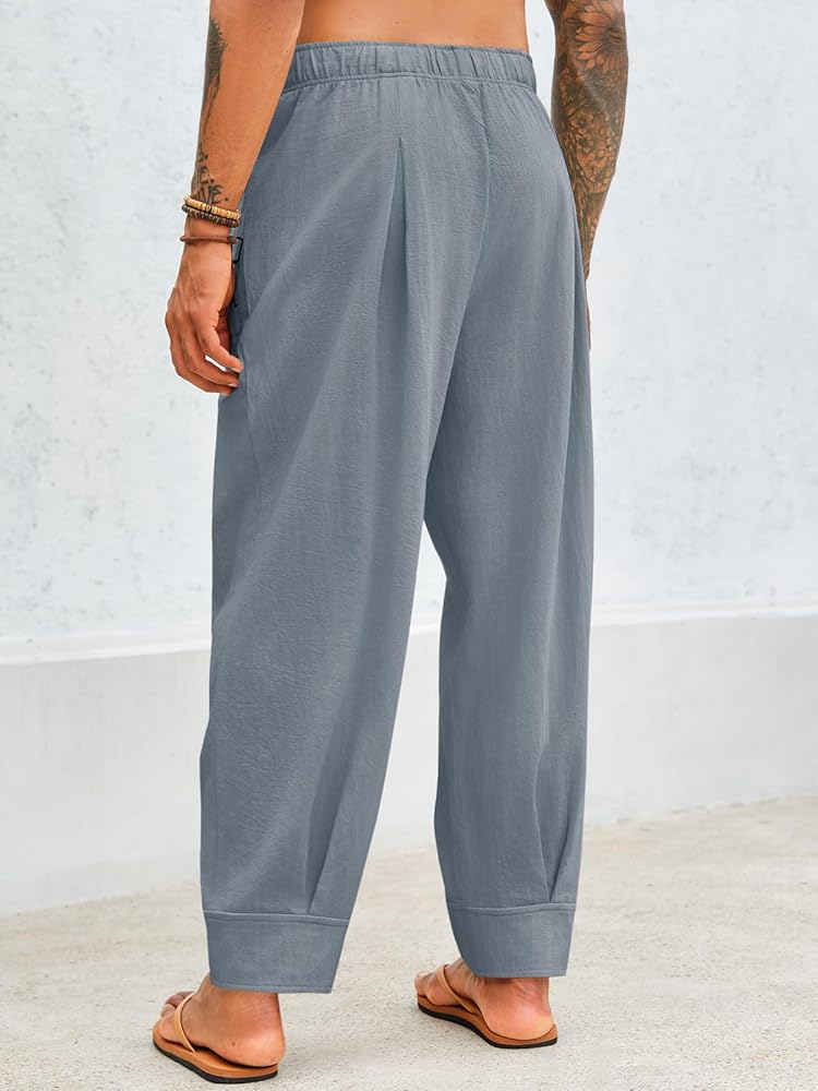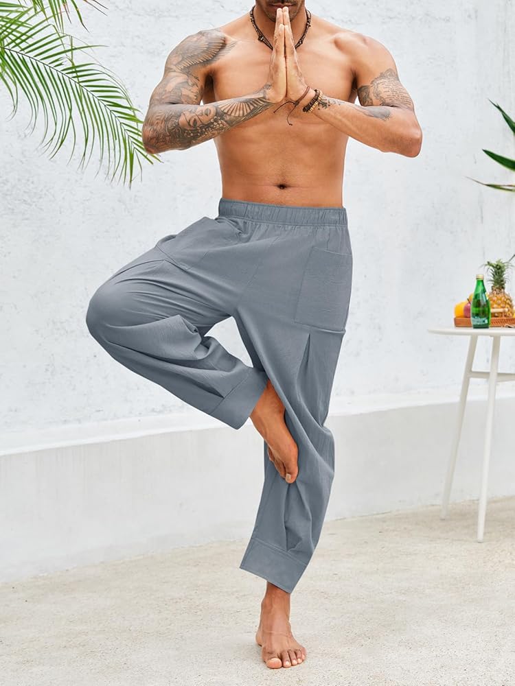 【عالية الجودة】: سراويل اليوغا الرجالية الكاجوال مصنوعة من 70% قطن و30% نسيج كتان، ناعم، خفيف الوزن، مسامي، صديق للجلد، يبقيك منتعشًا ومرتاحًا للارتداء طوال اليوم، خاصة في الأيام الحارة.