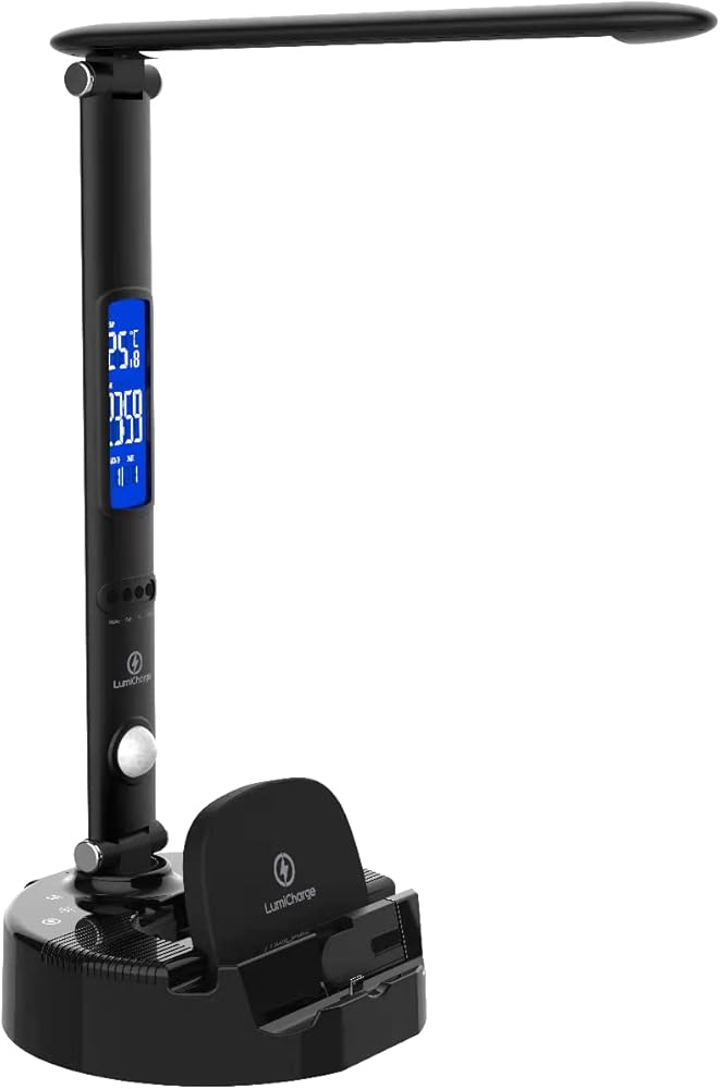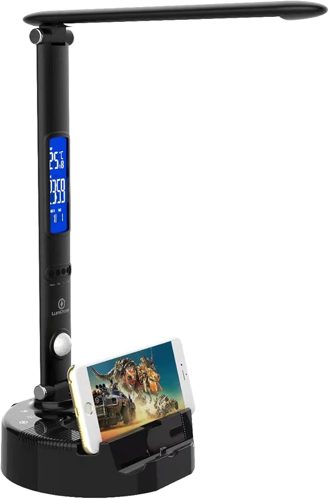 أكثر من مجرد مصباح: يشتمل مصباح المكتب LED الخاص بنا على ميزة الشاحن اللاسلكي وشاشة LED مدمجة في القاعدة لإظهار الوقت بدقة. بالإضافة إلى ذلك، يتميز مصباح القراءة أيضًا بميزة المنبه التي ستكون مفيدة، خاصة للطلاب!