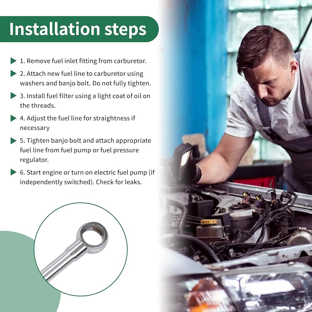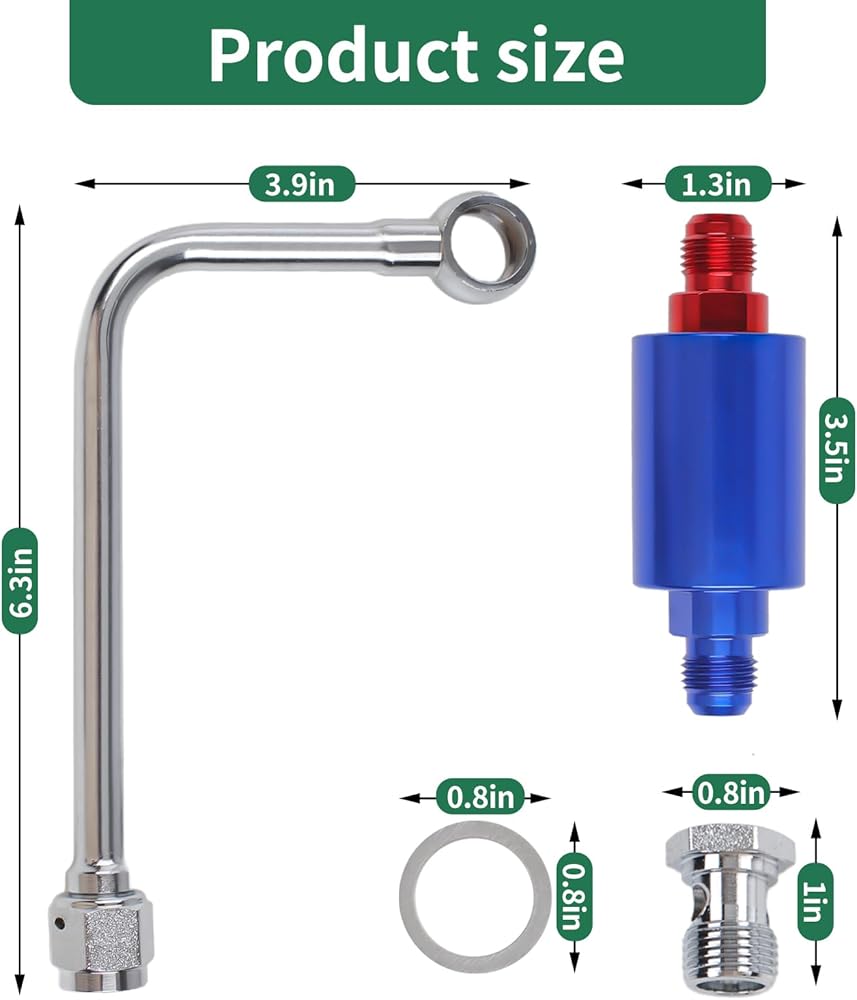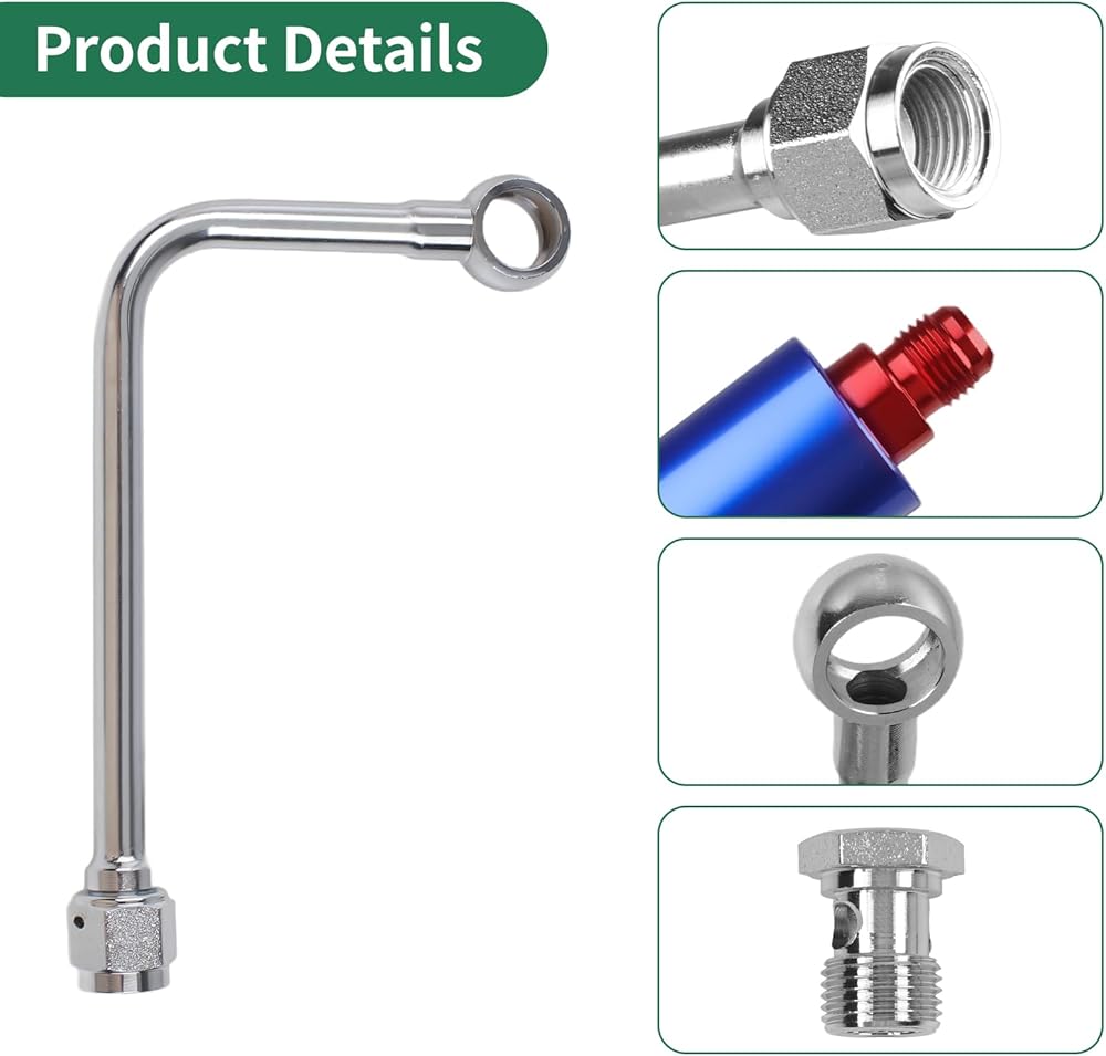 أنبوب وقود الكروم 8134 مصنوع من الفولاذ المطلي بالكهرباء، ومطلي بدقة، وليس من السهل الصدأ، وقوي وقوي، ويمكن استخدامه لفترة طويلة، مع عنصر فلتر 40 ميكرون ومدخل ذكر 6 بوصة، يتضمن 5/8 بوصة -20 مسمار بانجو ملولب مع حشوات.