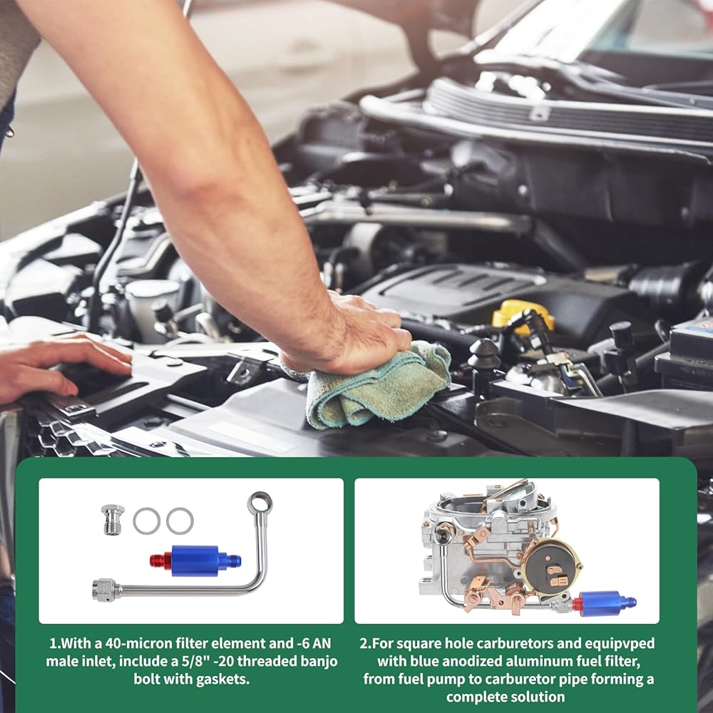 بالنسبة للمكربنات ذات الفتحات المربعة والمجهزة بفلتر وقود من الألومنيوم المؤكسد الأزرق، من مضخة الوقود إلى أنبوب المكربن الذي يشكل حلاً كاملاً، مناسب لسلسلة ثاندر أو مكربنات سلسلة بيرفورمير، مما يجعلها أكثر تخصيصًا للاستخدام.