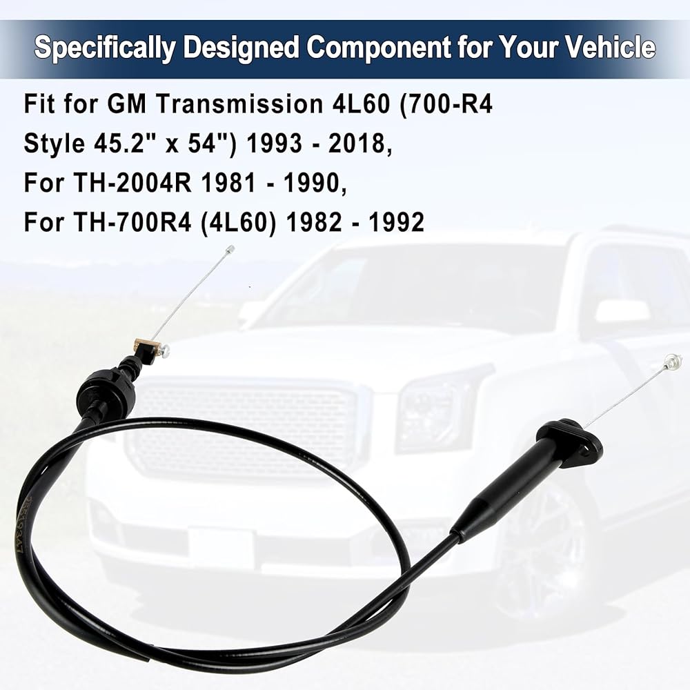 • Part Number: K65552 T54450A 25519347 25509824 25517312 342-6220 Compatible Model: New TV detent kickdown cable for GM Transmission 4L60 (700-R4 Style 45.2" x 54") 1993-2018,, TH-700R4 (4L60) 1982-1992 TH-2004R 1981-1990 4L60E (700-R4 Style 45.2" x 54") 1993-2018