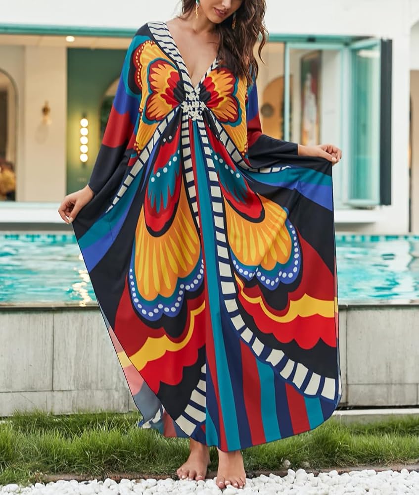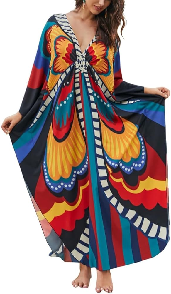 ♥Indulge in some serious relaxation when you lounge in this long caftan dress, featuring pretty geo prints and sexy V neckline. These kaftans are perfect for pairing with your favorite sandals, heels, or flip flops for a casual yet chic look.